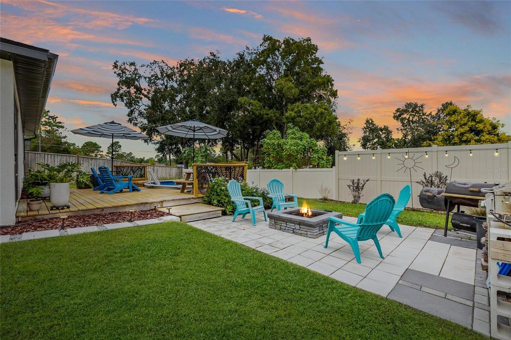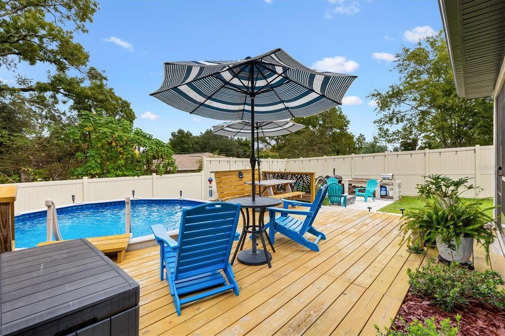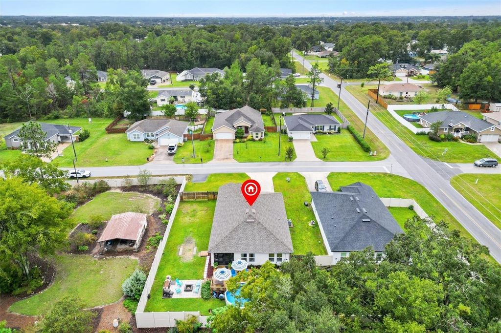 One or more photo(s) has been virtually staged. Better than new! Built in 2023, this beautiful 3 Bedroom, 2 Bath home in ORANGE BLOSSOM HILLS, an ALL-AGE Community adjacent to The Villages, Florida off Hwy 42 in Summerfield, offers modern comfort, quality upgrades, and a fantastic location! Step inside to find 9' Ceilings and LUXURY VINYL PLANK FLOORING throughout. The open Kitchen Features QUARTZ countertops, TILE Backsplash, SOFT-CLOSE Cabinetry, Stainless Steel Appliances, and a LARGE walk-in pantry. The SPACIOUS PRIMARY SUITE includes Dual sinks with QUARTZ counters, large walk-in Shower and Closet, Shiplap accent wall. Split bedroom floor plan with Jack and Jill bathroom between second and third bedrooms. Enjoy year-round Florida living in the screened LANAI or step out onto the DECK with built-in seating, perfect for entertaining. The ABOVE-GROUND POOL, SUNK HALF WAY IN-GROUND and surrounded by a CUSTOM DECK, includes an in-ground pool pump system. Enjoy cooler evenings entertaining around the Fire pit. The fenced yard is beautifully landscaped and has an irrigation system with new heads. Additional features include indoor laundry, 2-car garage, RV PARKING WITH HOOKUPS AND PUMP-OUT STATION, NEW Lenox HVAC system (2025). Constructed of CONCRETE/BLOCK/STUCCO. Best of all, there's NO HOA! Shopping, restaurants, medical facilities, and The Villages are all golf-cart accessible. This move-in-ready property is perfect for families or anyone seeking a modern, low-maintenance home with plenty of outdoor living space. Schedule your showing today before it's too late!