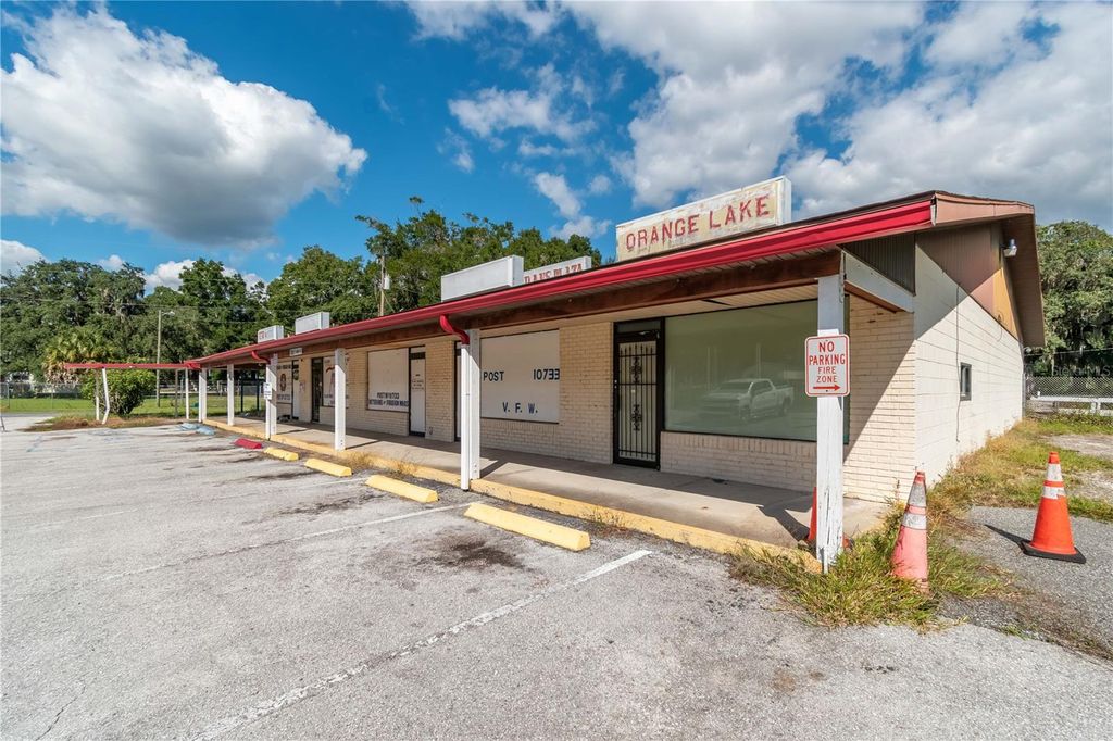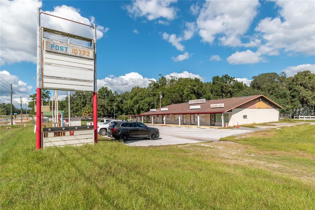 Under contract-accepting backup offers. Positioned directly along a major state highway with prominent frontage and excellent accessibility, this 4,800 sqft commercial building offers strategic potential for a variety of business ventures! Whether you're seeking a location for a restaurant, bar, retail shop, or other service-based operation, the flexibility of this property provides a great base point for further customization to achieve your vision. Situated on a .66 acre parcel with 276 ft of road frontage along North US Highway 441, the property is located across from a cross over that allows for easy access from both directions of traffic. The building itself features multiple functional areas that accommodate a wide range of commercial uses, including extensive storage, dedicated office spaces, larger open spaces, and a commercial kitchen space with a stand-up, walk-in cooler that has great potential for further customization. The interior layout supports both public-facing and operational needs, with options to customize for different configurations as you see fit. On the exterior of the building are two screened-in patios, a covered front entry, and an additional carport. The site is supported by ample on-site parking (13-18 spaces) and also includes a side yard that is cleared and undeveloped. Don't miss out on this valuable opportunity for an entrepreneur or investor to establish or expand operations in a high-visibility, growth-oriented corridor of Marion County!