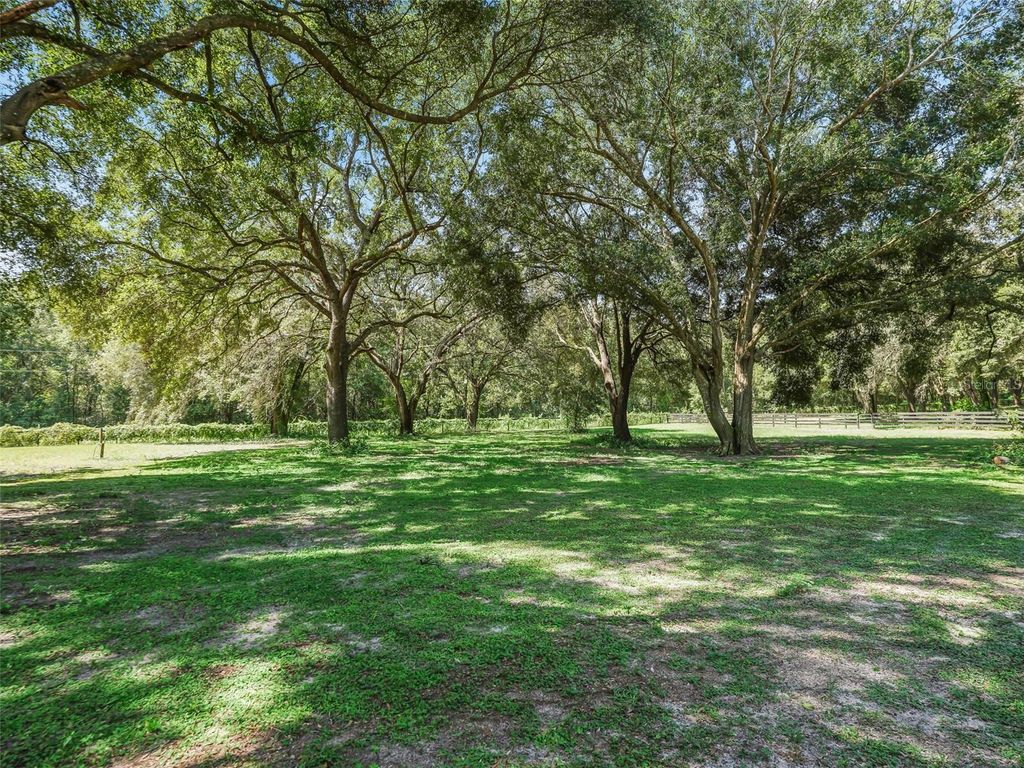 Discover the perfect blend of privacy, comfort, and equestrian living on this beautiful 8.5-acre horse farm located just 4 miles from The Villages and right around the corner from Grand Oaks Resort. This charming 3-bedroom, 2.5-bath pool home features an inviting country front porch - the perfect place to relax and sip your morning coffee while watching the sunrise. Inside, you'll find a spacious kitchen with solid oak 4-foot-high cabinets, granite countertops, all-new appliances, and fresh paint throughout. New windows and 14 ceiling fans ensure comfort year-round, a private office/library and a bonus room with a half bath offers flexible space for an office, playroom, or guest area. Step outside to enjoy the pool, or head to the large workshop/mancave complete with its own half bath. There's also an RV hookup with septic connection for added convenience. Equestrian features include a 4-stall horse barn with a tack room, feed room, storage, and a hot-water wash stall. Five lush pastures shaded by majestic oak trees provide plenty of space for grazing and riding, as well as a dressage arena that's ready for training. If you're looking for peaceful country living with top-notch amenities close to town, this property is a must-see!