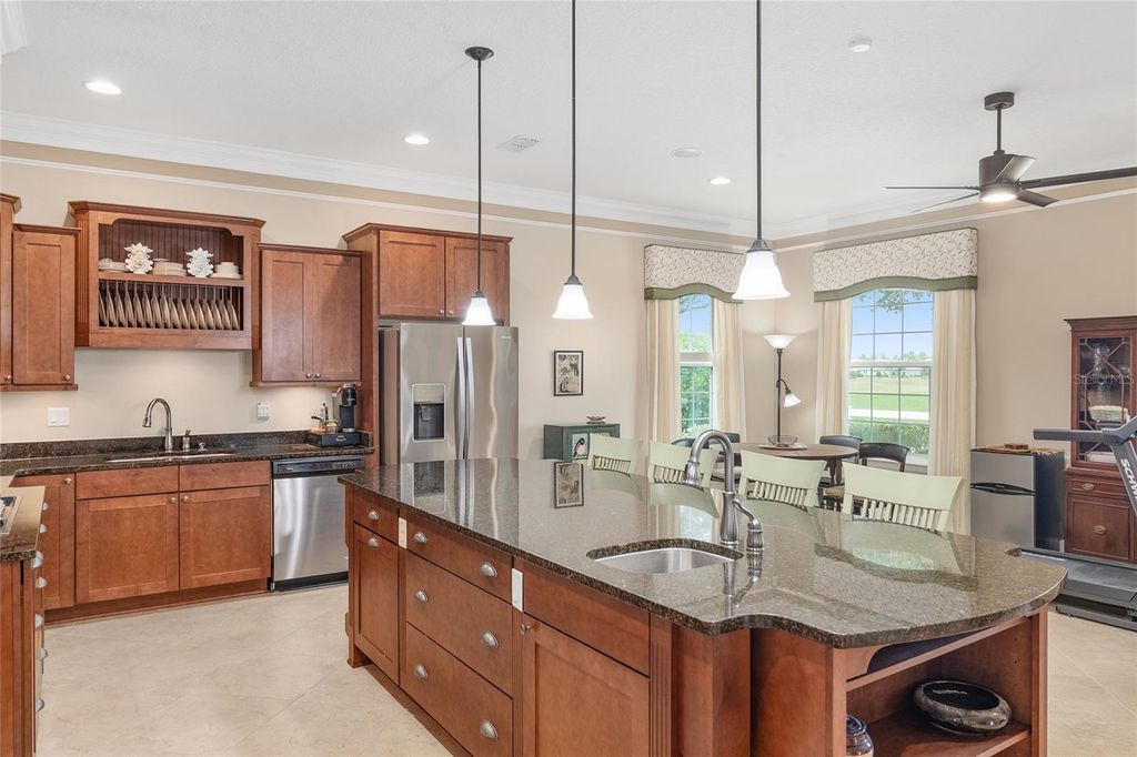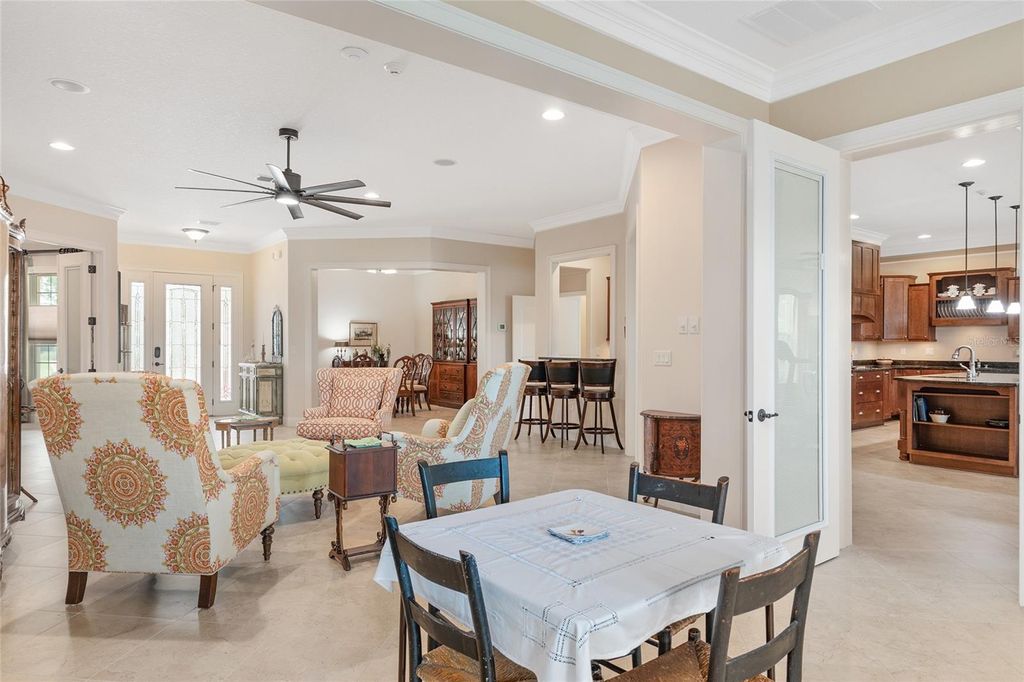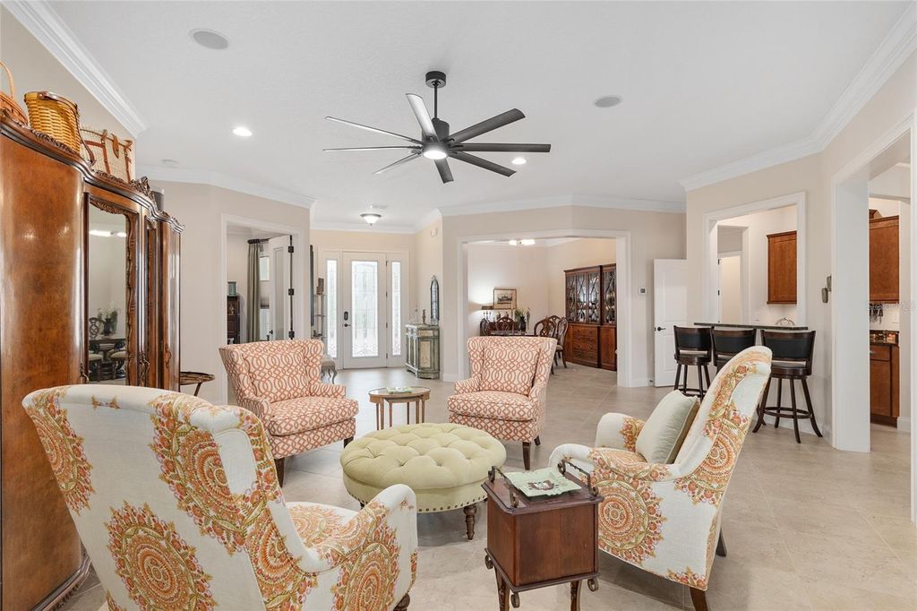 ***Stunning Luxury Golf Course Home*** JUST LISTED, stunning, elegant, Prestwick model home for sale in Candler Hills of On Top of The World, Ocala's premiere 55+ golf course community offering unmatched amenities, activities/clubs and golf cart access to nearby shopping centers. This beautiful split-plan home will not disappoint even the most discerning of buyers... with 3 bedrooms (owners suite and a guest ensuite), three full bathrooms, formal dining room, office, chef's kitchen, butler's pantry, formal living area, family room, and bonus room, this home offers a timeless, well refined living space to live your best life. A rare find and located on the Candler Hills Golf Course- there is nothing out there that compares. Enjoy panoramic views of the golf course and upgrades galore all throughout this home including 9 foot 4 inch ceilings, 8 foot 6 inch doors/doorways, completely tiled throughout with high-end diagonal patterned tiles (all one style of flooring throughout), tray ceilings, crown molding, granite kitchen counter tops, upgraded kitchen cabinetry with lazy-susans and a rotating pantry, no detail was spared... Outside you'll love the hardscaped landscaping, no lawn to mow... large brick paver driveway and grand entry. There's even a brick pavered, birdcage enclosed lanai to enjoy sunsets and panoramic views... lower HOA fees, and you own the land in this area. Golf cart included to sweeten the deal; Generator, whole house vacuum; two tankless, gas water heaters. If you've been looking for the perfect home and can't seem to find anything that meets your high standards, dont miss this rare opportunity- schedule your private showing today!
