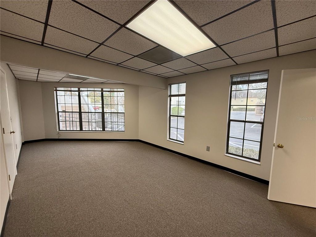 Now available, this centrally located first-floor office space offers excellent visibility directly on high-traffic E Silver Springs Boulevard, with an average daily traffic count of 31,000. The suite features a well-designed layout that includes five private offices, a built-in reception area, and a large open workspace, making it ideal for a variety of professional uses. Zoned B-2, the property provides flexibility for many types of businesses, from traditional offices to specialized services. Additional highlights include ample parking in a private lot and a prime location just 0.5 miles from Ocala's Downtown Square, surrounded by numerous dining, shopping, and business amenities.
