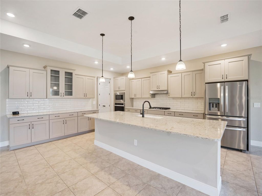 One or more photo(s) has been virtually staged. Welcome to this stunning and highly desired NorthHampton model located in the premier 55+ community of On Top of the World. This spacious home offers 3 bedrooms, 2 baths, a flex room, and a 3-car garage, perfectly blending style, comfort, and functionality. Step inside to an inviting open floor plan with elegant 17x17 ceramic tile flooring throughout and tray ceilings in both the living area and primary bedroom. The gourmet kitchen is a showstopper, featuring upgraded staggered cabinets with under-cabinet lighting, granite countertops, a large island with pendant lighting, stainless steel appliances, and a wall oven with built-in microwave. You'll love the generous storage and bright, modern design. The primary suite offers a peaceful retreat with a tray ceiling, double-sink vanity with makeup area, large tiled walk-in shower, bidet, and a spacious walk-in closet. Every room, including the flex space, includes remote-controlled ceiling fans, and the front bedroom and flex room feature plantation shutters for added charm.Enjoy outdoor living year-round on the large screened lanai, perfect for relaxing or entertaining friends. The 3-car garage provides ample space for your vehicles, golf cart, and extra storage, and gutters have been added to both the front and rear of the home.Located in the active On Top of the World community, you'll enjoy world-class amenities, golf courses, recreation centers, fitness facilities, and a vibrant social calendar "” all just minutes from shopping, dining, and medical services.