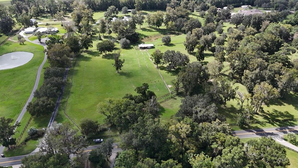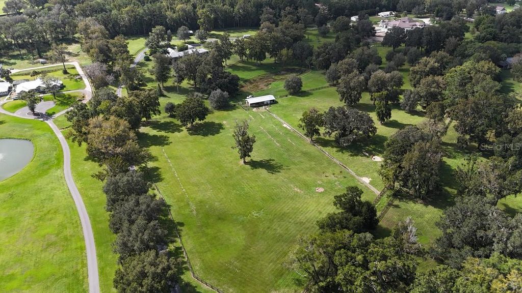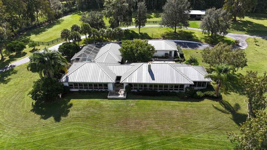 Luxurious Estate on 15 Acres with Barns & Screen-enclosed Pool Welcome to this exceptional gated estate nestled on 15 private acres with lush landscaping, which offers a rare blend of elegance, space, and functionality. Upon entering the residence, you are greeted by a striking interior. The open-concept floor plan is filled with natural light from expansive windows that showcase stunning property views from nearly every room. The living area features a double-sided fireplace with built-in bookcases, beautiful hardwood floors, a formal dining room, and a large open chef's kitchen with a center island that will seat four, which flows seamlessly through the main living areas, making it perfect for entertaining or relaxing in style. A private office provides a quiet space for work or creativity. The owner's suite is a true retreat, featuring a spa-inspired bath and direct access to the screen-enclosed pool area surrounded by lush landscaping. The separate wing offers a den with two separate sliding glass doors, one leading to the pool area and the other to the center courtyard, as well as two other ensuite bedrooms. The beautifully landscaped courtyard invites relaxation and outdoor entertainment for family and friends. A spacious 4-car garage completes the estate. The equestrian enthusiast will appreciate having two barns with a total of (6) 12X12 stalls, and (1) 12x24 stall, four paddocks, and extra storage"”ideal for horses or hobby farming. Offering luxury, privacy, and stunning views, it is minutes from town and conveniently located between the Florida Horse Park and The World Equestrian Center, offering convenient access to local amenities such as the Country Club of Ocala golf course and town services.