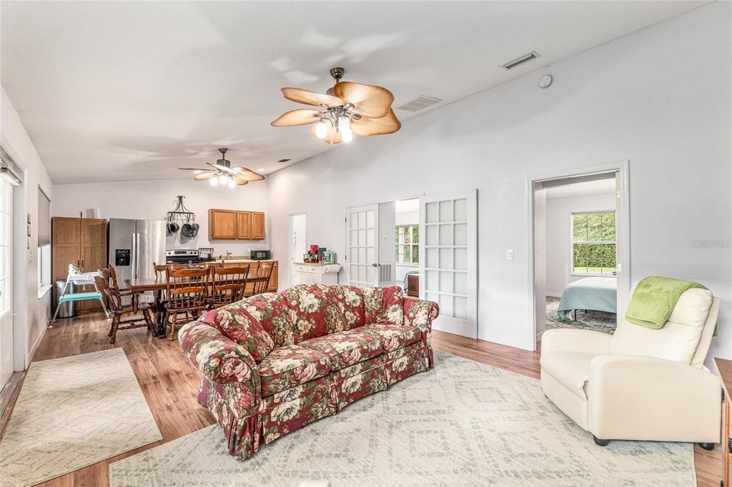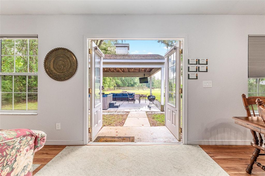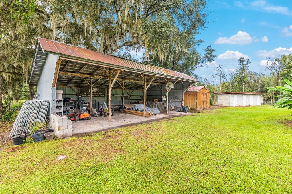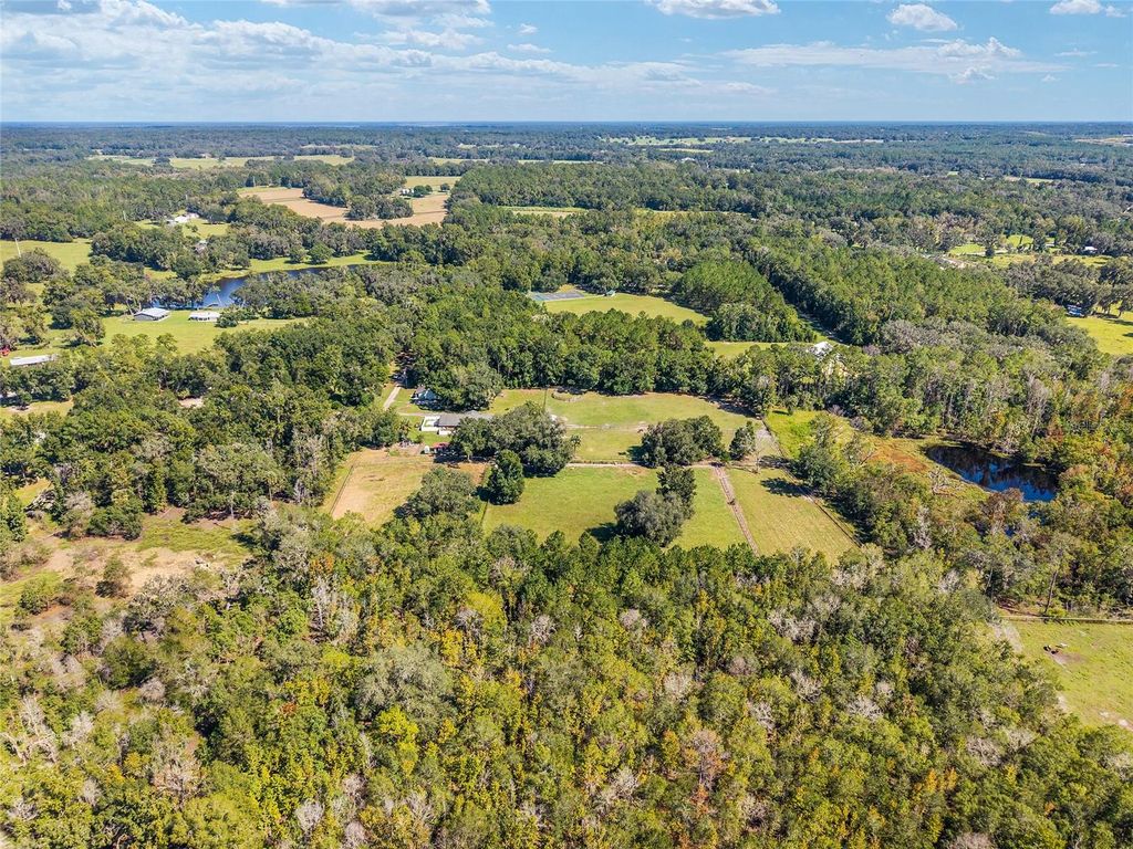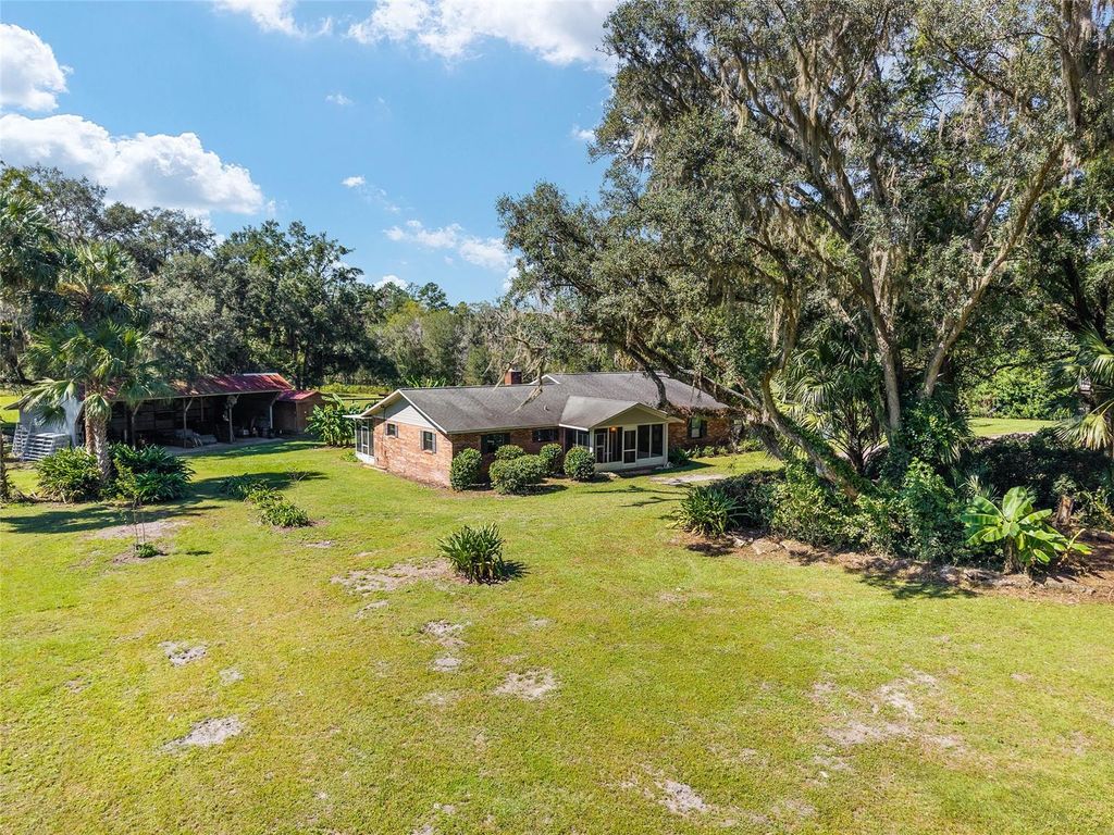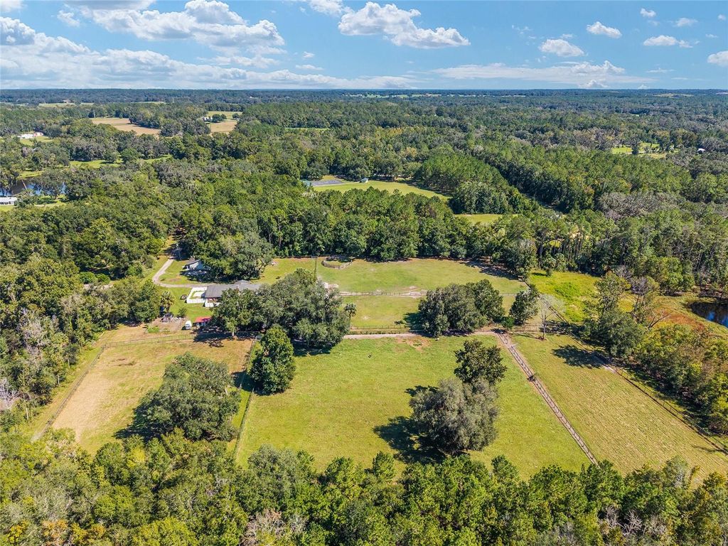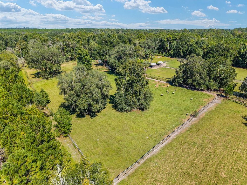 Under contract-accepting backup offers. Back on the market due to buyers being unable to satisfy a contingency. Whether you're seeking a successful homestead farm, a tranquil retreat, or a combination of both, this 22 acre property offers a versatile and picturesque setting to realize your rural lifestyle dreams. The updated 3/3 main home features an expansive kitchen ideal for entertaining, open concept living, tile floors throughout, and a luxurious primary suite for relaxation. Multiple screened porches provide inviting outdoor living spaces to enjoy the peaceful surroundings. A charming, 1/1 guest house has a proven track record of generating substantial Airbnb income, providing an excellent opportunity for passive income or hosting friends and family. The property includes a 35' x 15' RV pad with electric hookup, a large 48' x 30' equipment barn for all your farming needs, and five lush pastures suitable for livestock or crop initiatives. You'll find numerous fruit trees onsite including peach, apricot, pomegranate, pomelo, olive, persimmon, pear, mulberries, passion fruit, and pecan. A pond enhances the scenic landscape and supports local wildlife. Diverse woods and wetlands provide privacy from neighbors and creates a serene, nature-rich environment. This unique retreat boasts quick access to I-75 for easy commuting. Located just 2.3 miles from the Ocala Jockey Club, 6.5 miles to Majestic Oaks, 9.2 miles to Micanopy, 19 miles to Gainesville, and 22 miles to the Ocala Downtown Square, this property places you within easy reach of vibrant community amenities. Main Home HVAC 2024. Well Pump and Pressure Tank 2023. Major home renovation completed in 2017 by Wilmek Construction. Whole House Generator 2017. Guest Home constructed in 2006. Seller will reroof the main residence, guest house, and pavilion before closing for a full price contract!