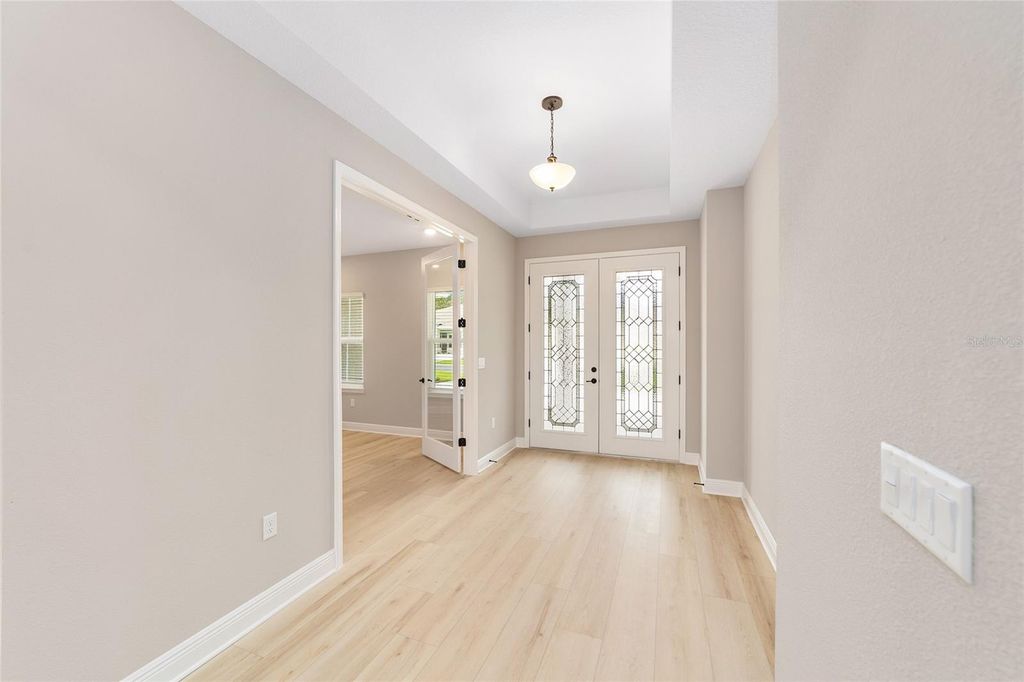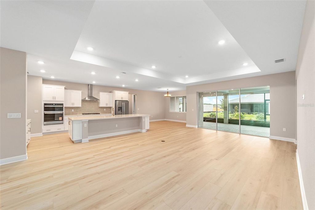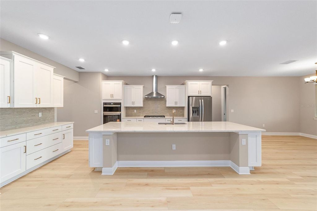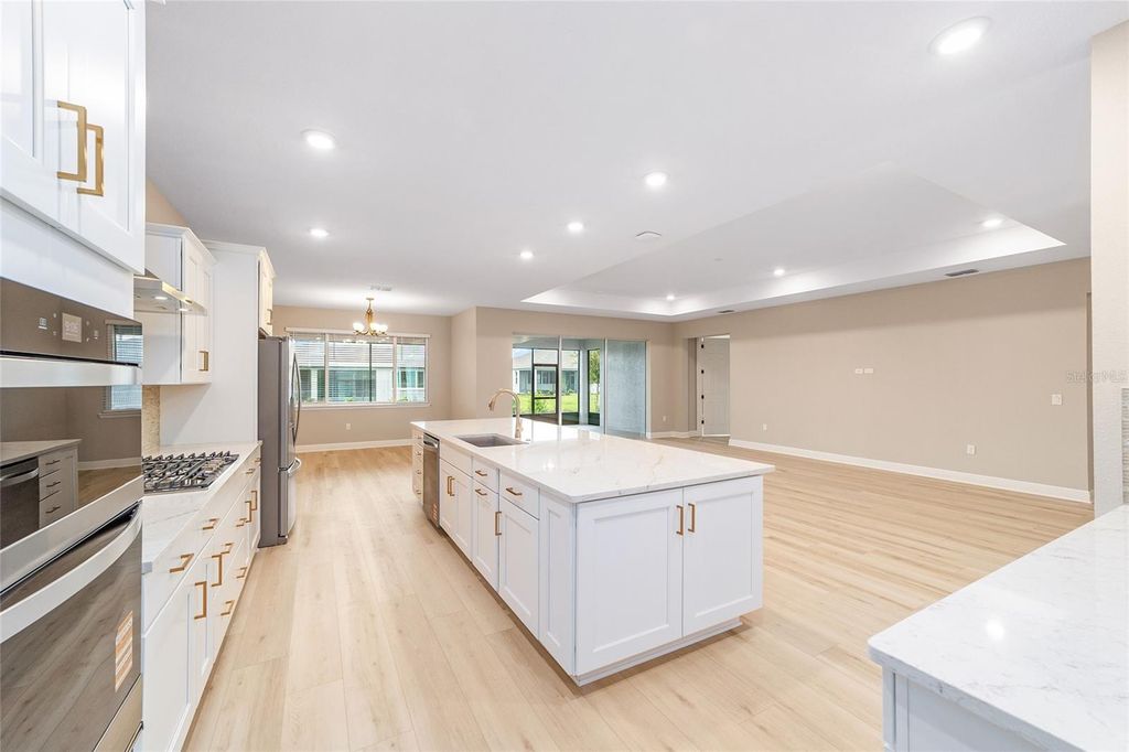 Stunning Aberdeen in Longleaf Ridge! This luxurious new construction Aberdeen model offers over 2,900 sq ft of beautifully designed living space with 3 bedrooms, 3 bathrooms, a flex room with French doors, and a 3-car garage. Featuring French entry doors, tray ceilings, and an open floorplan, this home perfectly combines elegance, functionality, and modern comfort. The gourmet kitchen is a chef's dream with premium white staggered cabinets with crown molding, under-cabinet lighting, quartz countertops, a built-in oven and microwave, 5-burner range cooktop with hood, stainless steel appliances, an elegant backsplash, an oversized center island, and a spacious walk-in pantry. The living area features a large tray ceiling and a 3-panel sliding door that opens to the screened lanai, creating seamless indoor-outdoor living. The primary suite is a true retreat with five windows with blinds, a tray ceiling, and a luxurious ensuite with tile flooring, his-and-her extended quartz vanities, a zero-entry tiled walk-in shower with built-in bench, and his-and-her walk-in closets. Bedroom 2 offers two windows with blinds, an ensuite bath with a single quartz-topped vanity, zero-entry tiled walk-in shower with built-in bench, and a walk-in closet. Bedroom 3 is adjacent to the third bathroom, which features a single sink and a tiled tub/shower combo. The flex space at the front of the home, complete with French doors, provides an ideal space for an office, den, or hobby room. Located in the sought-after Longleaf Ridge neighborhood within On Top of the World, this home combines high-end finishes, thoughtful design, and access to the community's resort-style amenities for the ultimate in Florida living.