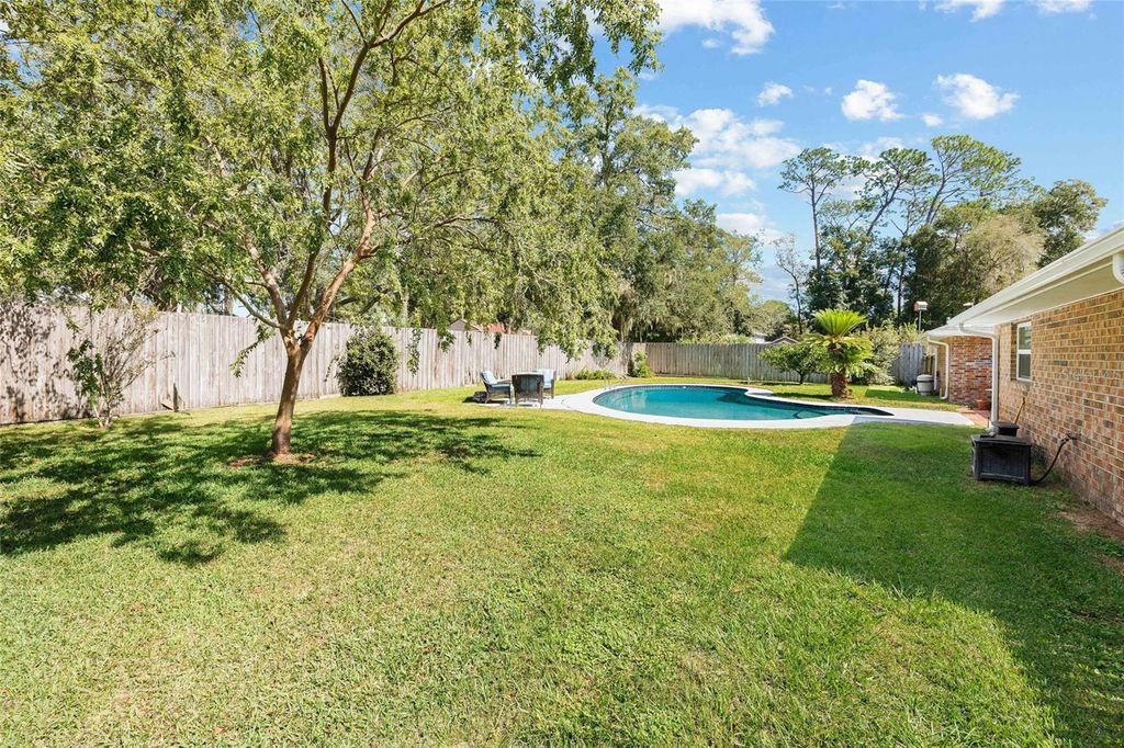 Welcome to this beautifully maintained 4-bedroom, 2-bath pool home in Stonewood Estates, one of Southeast Ocala's most desirable neighborhoods! With 2,301 sq. ft. of living space on nearly a ½-acre lot, this property blends classic Southern charm with modern comfort. Step inside to find a bright, open layout featuring a spacious dining room with a brick fireplace, a formal living room, and a cozy family room overlooking the pool. The updated kitchen boasts granite countertops, soft-close cabinetry, stainless steel appliances, and a sunny breakfast nook framed by plantation shutters. The primary suite offers backyard views, an ensuite bath, and a walk-in closet, while the guest bedrooms are generously sized and share a tastefully maintained hall bath. Enjoy the Florida sunshine poolside"”new pump 2023"”amid mature landscaping and private fenced grounds. Major system updates include: Roof (2022); HVAC (2025); Gas water heater (2023); Pool pump (2023); Newer double-pane windows Additional highlights include an indoor laundry room, oversized 2-car garage, and a gas range for the home chef. Conveniently located near Ward-Highlands Elementary, Forest High, shopping, hospitals, and Downtown Ocala "” this home offers the perfect balance of tranquility and accessibility.