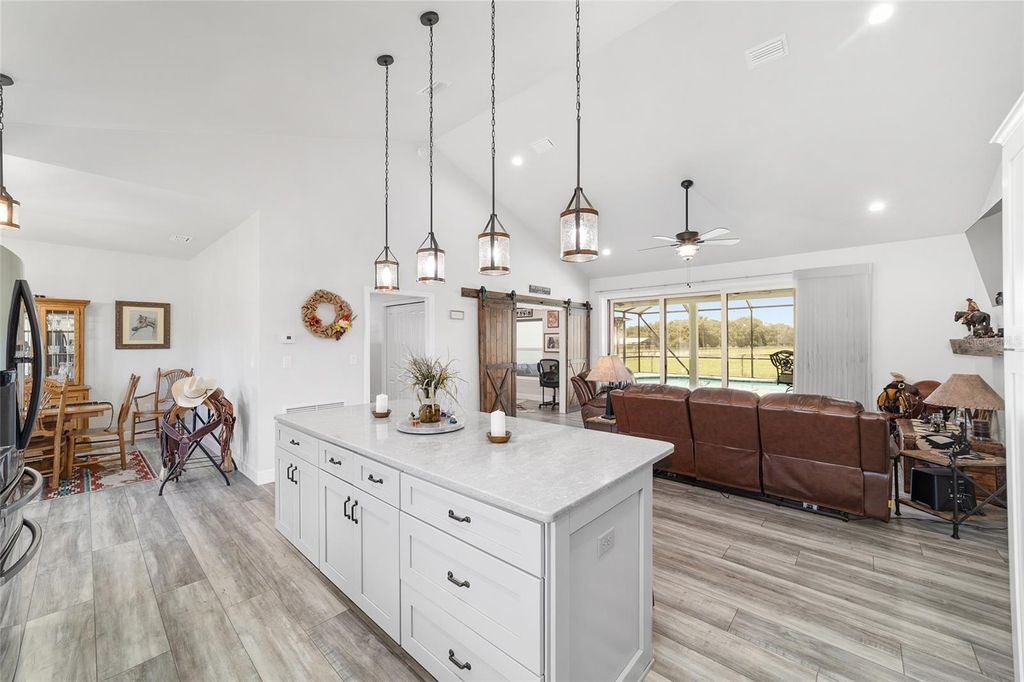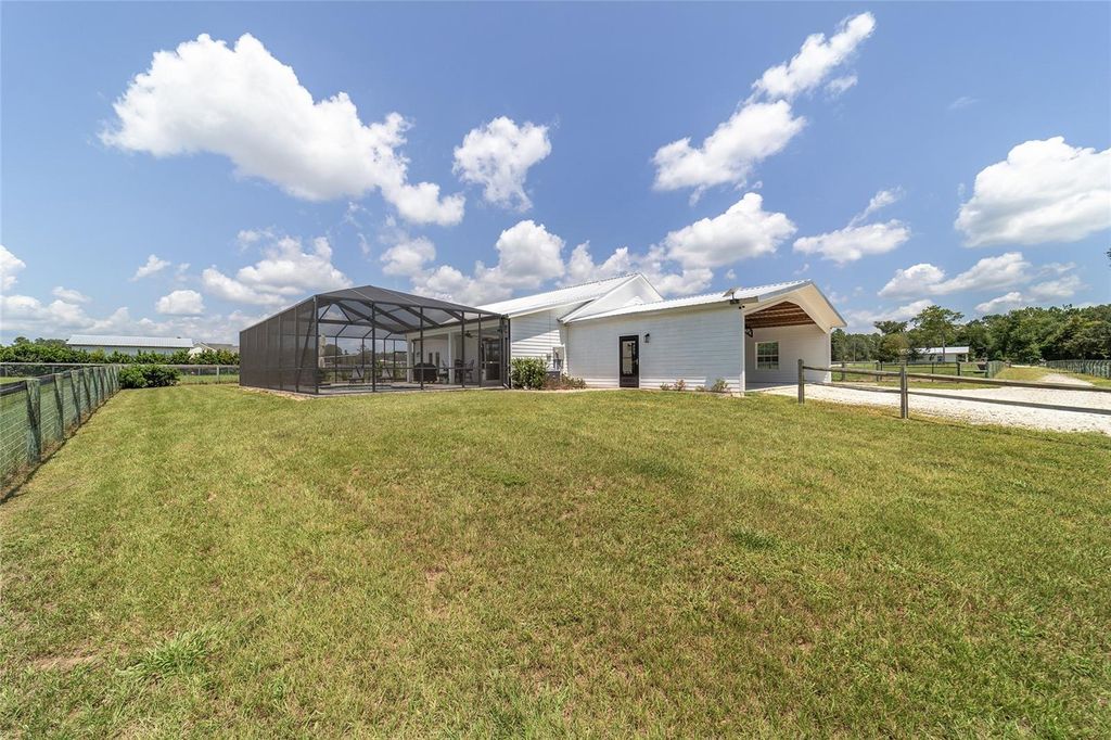 Welcome to this charming 10.40-acre equestrian retreat in Williston, Florida, where functionality meets farmhouse charm. From the moment you arrive at the gated entrance"”complete with elegant stone columns"”you'll feel the pride of ownership and thoughtful planning that went into every inch of this stunning property. A long driveway leads past lush fenced pastures to the heart of the farm, where a 2022-built center aisle horse barn and a modern farmhouse-style home await. The 48' x 48' center aisle barn features 8 stalls, 4 with private turnout pens and end gates for easy access to the pastures. There's a wash rack, two flexible open bays that can become additional stalls or hay storage, and a 12' x 24' insulated, air-conditioned tack room with a 5' roll-up door"”ideal for moving your tack and feed in comfort. Rubber flooring throughout the aisle, stalls, and tack room adds to the functionality and ease of maintenance. For the equipment or hobby enthusiast, a second 40' x 84' pole barn (also built in 2022) offers five open bays with an additional 12' x 60' overhang"”perfect for tractors, trailers, or RVs. A 24' x 40' enclosed garage with two large roll-up doors provides space for a workshop, toy storage, or additional farm use. In addition, you have 200-amp electric service to the home and both barns, plus two RV hook-ups (one 30amp & one 50amp) and dual electric meters, this property is designed for versatility. At the top of the farm sits the quaint 3-bedroom, 2-bath home, built in 2022 and overflowing with charm. The farmhouse kitchen features stainless steel appliances, glass backsplash, a center island, and bar seating that opens to the spacious living area. A retractable glass wall extends your living space onto the screened lanai, which features a heated saltwater pool (added 2023), all facing west for breathtaking sunsets after a long day. This split floor plan offers a private master suite, while the 3rd bedroom, complete with sliding barn doors and Murphy Bed doubles as an office providing work-from-home potential. Another great feature of the home is a 24' x 36' attached 3-car carport making everyday access convenient rain or shine. Enjoy panoramic views of your horses from nearly every window. Four large pastures surround the home, and the fifth pasture features a riding arena, ideal for any discipline. Tucked away in peaceful countryside yet still just 6 miles to Williston, this property offers the best of both worlds. You're also 20 minutes to the HITS showgrounds, 25 minutes to the World Equestrian Center, 35 minutes to Gainesville, 30 minutes to Ocala, and less than an hour to the Gulf of Mexico for beachside escapes and fishing adventures. Whether you're training, relaxing, or entertaining, this turn-key farm has everything you need to live the equestrian dream. The sunsets here are unforgettable"”and so is the opportunity.