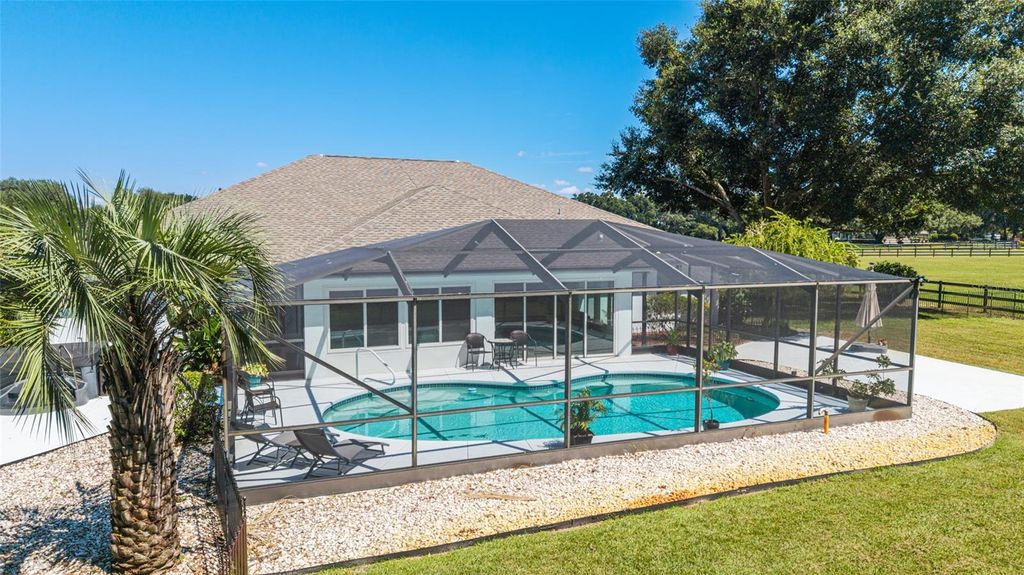 Big Price improvement! Who has been looking for a 4/3 pool home with a huge workshop and brand new 5 stall barn!! This well maintained farm is situated in the desired equestrian community of the Paddocks of Millwood, conveniently located inbetween Ocala and Gainesville and 25 minutes to the World Equestrian Center. This spacious 2003 updated home boasts 4 bedrooms, and 3 bathrooms complimented by a dedicated office space with an abundance of natural light and serene views. The heart of the home features a modern gourmet kitchen that seamlessly blends contemporary convenience with farmhouse charm. Step outside to find your private oasis, complete with a sparkling pool and new hot tub, ideal for relaxation and entertaining. This farm also comes with peace of mind with its new generac generator as well as a 40 x 60 workshop that will have every husbands attention. This building is set up to accommodate a large RV and also has full hook up and separate entrance. Lets not forget our 4- legged family members. Property is fenced with vinyl safety fence complete with no climb and virtually no maintenance . The brand new 5 stall center aisle barn complete with pavers, fly spray system, 12x12 stalls, wash stall , and tackroom will impress the fussiest horseman. Pride of ownership is evident in this meticulously kept farm with so many more details to mention . Make this a farm to come see!