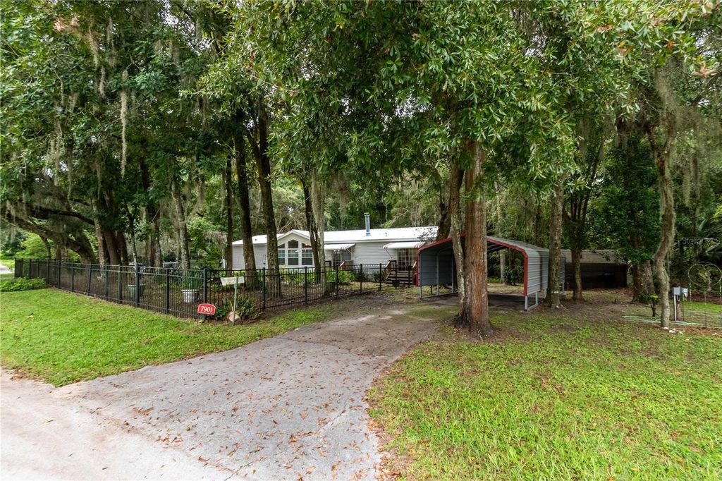 Nestled in the heart of NW Marion County's premier horse country, this 24.25-acre farm presents a unique opportunity for equine professionals seeking a fully functional and private setup. Located just minutes from both HITS and the World Equestrian Center, the property offers convenience and quality in an area celebrated for its limestone-rich soils and lush pasture, an ideal foundation for raising and training horses. This farm is ideal for a range of equestrian disciplines, with a good blend of open areas and shade from mature trees that could be cleared further as desired. There are several sites that could serve well as a barn site, allowing you to design to suit your needs, with additional outbuildings and sheds in place to provide extra storage and utility space. The acreage is primed for further customization, whether you're looking to establish arenas, additional paddocks, or specialized facilities. With its A-1 zoning, the property is suitable for a variety of agricultural uses with a highly convenient location that allows you to take advantage of nearby equine retailers, service providers, and venues. A well-maintained 3-bedroom, 2.5-bath double-wide manufactured home provides over 2,000 sqft of space with an open, split-bedroom floor plan. The family room features stunning picture windows overlooking the surrounding farm and high vaulted ceilings. A secondary living room includes a cozy fireplace, perfect for unwinding during cooler months. Those who enjoy cooking will love the spacious kitchen, complete with ample cabinet and counter space, a center island, and a breakfast nook. Each bedroom is warm and inviting, though the primary suite is the real star with a walk-in closet and a private en-suite bathroom that features dual sinks, an accessible bath with door entry, and glass shower. At the back of the home is a large wooden porch, ideal for seating, a barbecue, and potted plants as desired. With no HOA or association fees, this property offers true freedom and flexibility for serious equestrians looking to establish or expand their presence in the Horse Capital of the World®.
