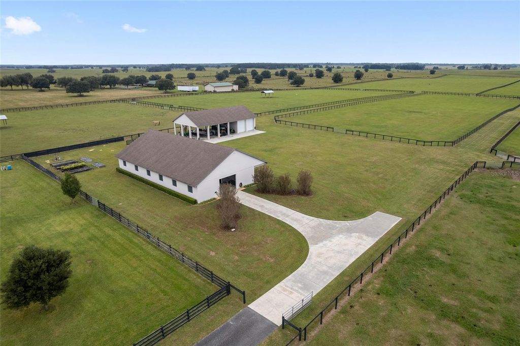 This turnkey 60-acre farm offers tranquility, top-tier amenities, and unmatched convenience. Under 10 minutes to the World Equestrian Center, 5 miles from Live Oak International, and 20 minutes from Ocala's premier shopping and dining, The property is fully fenced with five paddocks, two large pastures, and five shade shelters. The immaculate center-aisle barn features 9 stalls, a full bath, feed/tack room, and wash rack. A spacious workshop with open bays and enclosed storage provides ample room for equipment and trailers. The custom three-bedroom home boasts wood floors, crown molding, and a stone fireplace, plus a chef's kitchen with island seating, pantry, and wine fridge. The bonus room with wet bar and scenic views opens to a peaceful back patio "” perfect for relaxing or entertaining. Move-in ready and ideally located, this property offers the best of Florida's equestrian lifestyle.