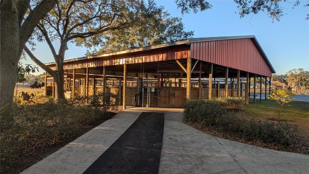 This exceptional property is offered at $30,500 an Acre with all the improvements! Vacant land sells for not much more in this area! This well appointed 120 Acre farm is 19 quick miles (one traffic light) to the World Equestrian Center and 9 miles to Ocala HITS. 120 +/- acres of hilly, prime soil, with 2 Residences with more Champion Live Oaks than can be counted! The 2 homes are neat and tidy Mobile homes ( 4/2 and 3/2). The farm was designed by a professional horseman with the horse in mind! All 26 the stalls of the center aisle barn are 12x14 with a feed room, office, bathroom, septic, wash rack, covered shavings bin, independent meter and a fly spray system. In addition to the barn the improvements include a covered RV/Boat pad with electric, and with septic/bathroom. To store other large toys and tractors, an supersized workshop is conveniently placed. The Amenities include a 6 horse eurosizer, 4 stall foaling barn, 1/2 mile track, starting gate and a pond designed for swimming horses. Not to mention acres and acres of pasture, 14 paddocks total with auto waters to each paddock. The farm has 3 wells. The location of this property gives the benefits of "The Horse Capital of the World" with much lower Levy County taxes. For outdoor sports and ecological wonders, The Rainbow River, Devils Den and the "Nature Coast" are all an easy distance from this property. Please note that acreage on Zillow is inaccurate, there are 2 parcels that equal 120 Acres. The total sq footage is combining both MHs. The 4/2 is 1976 Sq ft YB is 1998. The 3/2 is 1518 Sq ft YB 1998