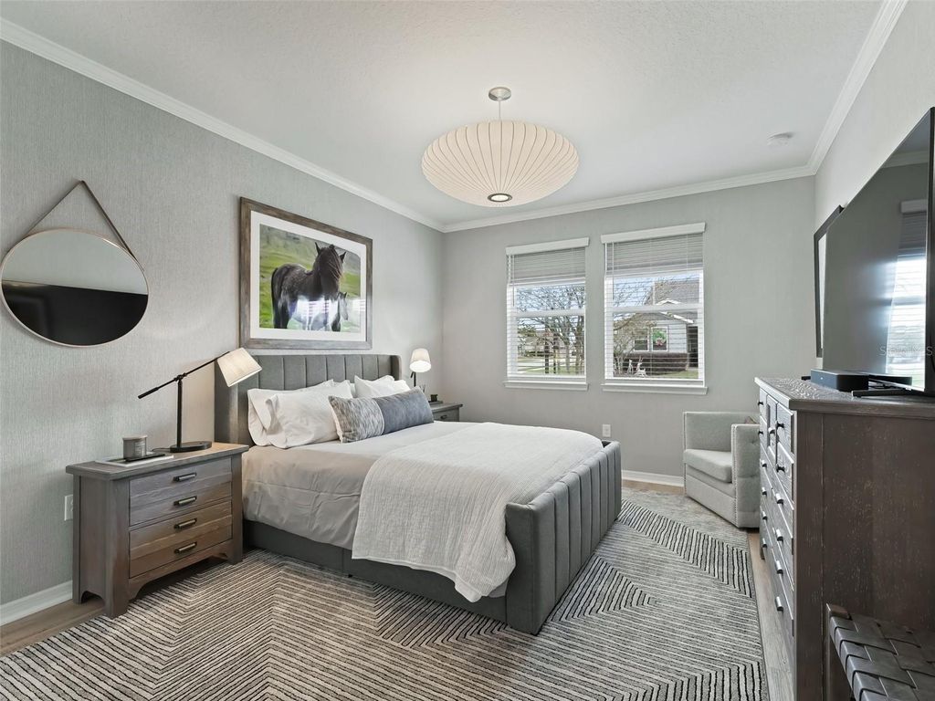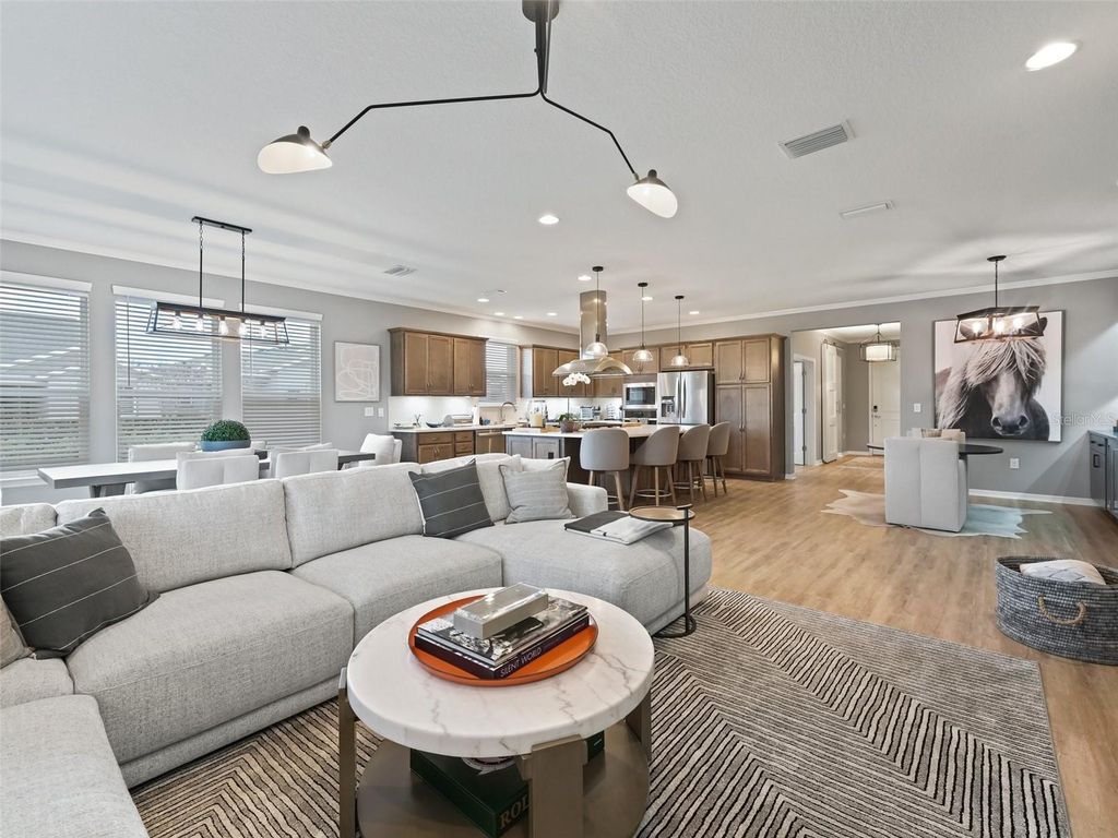 Welcome to Ocala Preserve FLorida resort living at its best in this elegant gated community. This home is the Refresh model boasting upgrades galore and open concept plan.. This house full of natural light throughout . an Opulent 2 bedrooms 2 bathrooms plus a Den/Office floor plan. An inviting entryway welcomes you to a grand kitchen with highly upgraded granite, a chef's gourmet dream kitchen . Brand new LVP floors throughout , gorgeous crown molding and top of the line window treatments made specially to suits this home . The great room features a flex area ( bar/sitting room) formal dinning and living room space combined . Additionally, you are greeted by enclosed lanai with sliders, that is perfect for entertaining your guest in every season. Enjoy the fire pit and paved outdoors on your corner lot. Come enjoy the fantastic amenities offered , such as the trails ,lake side veranda and boardwalk, resort spa , fitness center , tennis , pickleball and bocce , restaurants club , bar and so much more . Very close to the WOrld Equestrian Center , shopping restaurants and more THis house is offered fully furnished