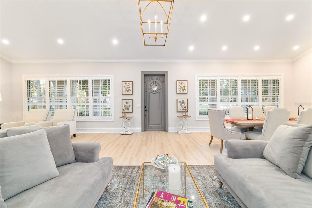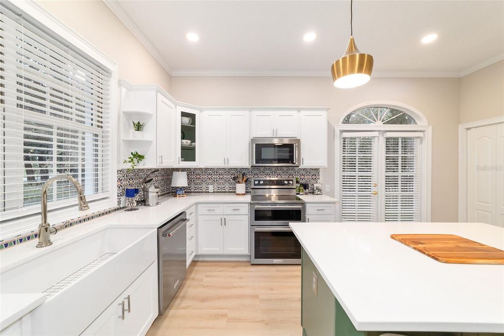 Welcome to this beautifully updated 4 bedroom, 3 bath home in the Country Club of Ocala, which backs up to a peaceful farm offering plenty of privacy. From the moment you pull up, you'll notice all the care that's gone into it "” fresh exterior paint, new shutters and new pavers that lead from the driveway to the front porch. The backyard is truly the highlight, with a sparkling refinished pool surrounded by new pavers, plenty of covered space to sit and unwind and soft lighting from wall lanterns and ceiling fans that make evenings outside extra cozy. Inside, the home feels warm and welcoming with fresh paint, new blinds and thoughtful touches throughout. The kitchen has been completely updated with new stainless steel appliances (added in 2024), a farmhouse sink, new cabinet doors with stylish hardware, and two glass front cabinets that add just the right amount of charm. The family room and dining room flow together seamlessly, creating one large, open space with cathedral ceilings that make the home feel bright and airy. A wood-burning fireplace sits beautifully between the two areas and has a comfortable sitting area in front of it. The master suite feels like your own little retreat, featuring a gorgeous remodeled bathroom with a brand new shower with new tile, new double vanity, shiplap walls and an added transom window that brings in natural light. Home has split bedroom plan with one bedroom having its own bath and the other 2 bedrooms sharing a jack and bill bath. Both guest bathrooms have also been updated with new tiled showers and modern fixtures, so everything feels fresh and new. Even the practical details have been taken care of: the roof was replaced in 2023, the air conditioning system (including a mini split in the garage) and both water heaters were replaced in 2024 and the 3 car garage now has ceramic tile flooring. Every corner of this home has been given attention, and it truly shows. It's beautiful, comfortable, and completely move-in ready "” a place where you can settle in and start enjoying the good life in one of Ocala's most desirable communities.