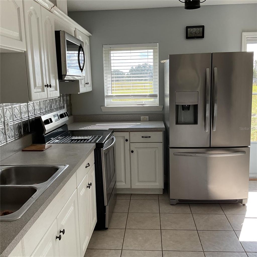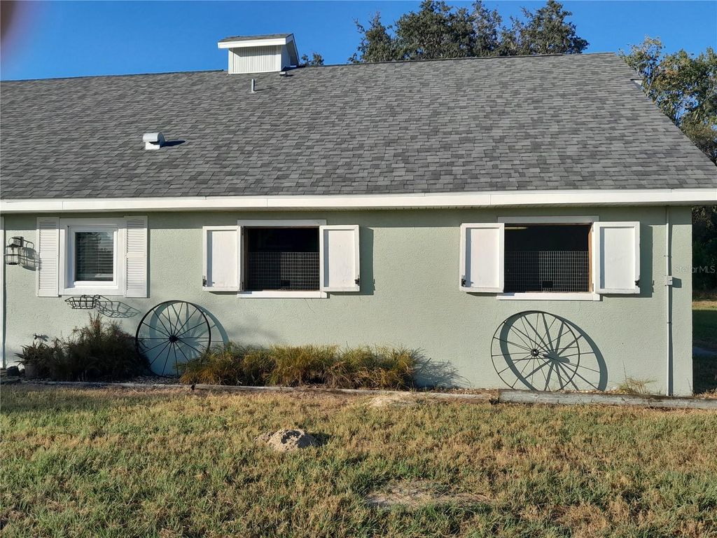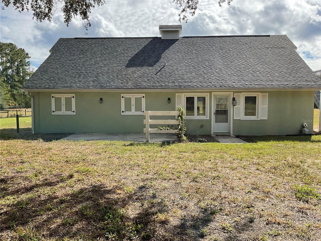 NESTLED IN THE TRANQUIL LAKE BONABLE ESTATES NEIGHBORHOOD, this charming 3 bedroom, 3 bath home offers the perfect balance of privacy and rural charm on 10.8 acres. Set on a paved road the entire property is board fenced and zoned Rural Residential, with no HOA, and no flood zone. Property is well-suited for those seeking a peaceful retreat, a horse farm and more. Property is updated with fiber-optics. Offering just over 1,344 sq. ft. of space, the interior of the home features ceramic tile flooring throughout that is easy to clean. The kitchen is equipped with lots of cabinet storage, stainless steel appliances, and a spacious breakfast counter. The washer and dryer is located in the living area behide the closet door. Each of the downstairs 2 bedrooms is warm and inviting with its own bathroom. The living area is an open concept with a kitchen combination. This is a split house plan with a horse barn attached with easy access to your horses in 3-12x12 stalls and plenty of storage for feed and tack with electric. Upstairs is the third bedroom with its own kitchenette and its own bathroom for guests, man cave or could be a rental? Also has storage space upstairs over the barn. Outside is a separate pole barn with 2 stalls and a run in that is appoxamately 40 x 36. No electric but could easily be added, and 3 paddocks with beautiful pastures, and beautiful oak trees. The horses have their own area with a wash rack on a concrete slab and a hitching post. New shingle roof 2024, the septic tank is in the front of the house with the drain field between the tree and the house and was pumped out 3-4 years ago. This property is located in a quiet equestrian-friendly neighborhood that is perfect for riding on or off property. With Goethe State Forest just minutes away for horseback riding, hiking, and wildlife watching, plus Rainbow Springs State Park nearby for kayaking and swimming, outdoor enthusiasts will find endless opportunities for adventure. If you're searching for a spacious country retreat with modern amenities and incredible outdoor access, this property is a true must-see! Close to Dunnellon, Ocala, Gainesville, Bronson and Cedar Key. Not too far from HITS, World Equestrian Center and Blk Prong Equestrian Village for horse events and entertainment with restaurants and other amenities. Please don't let this one pass you by, call today for a tour!