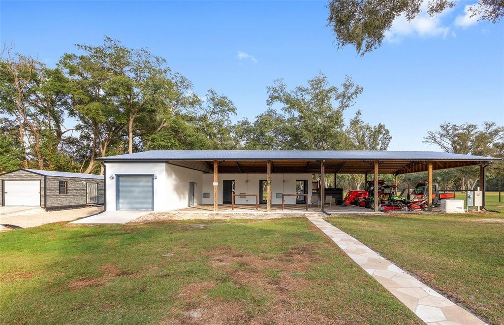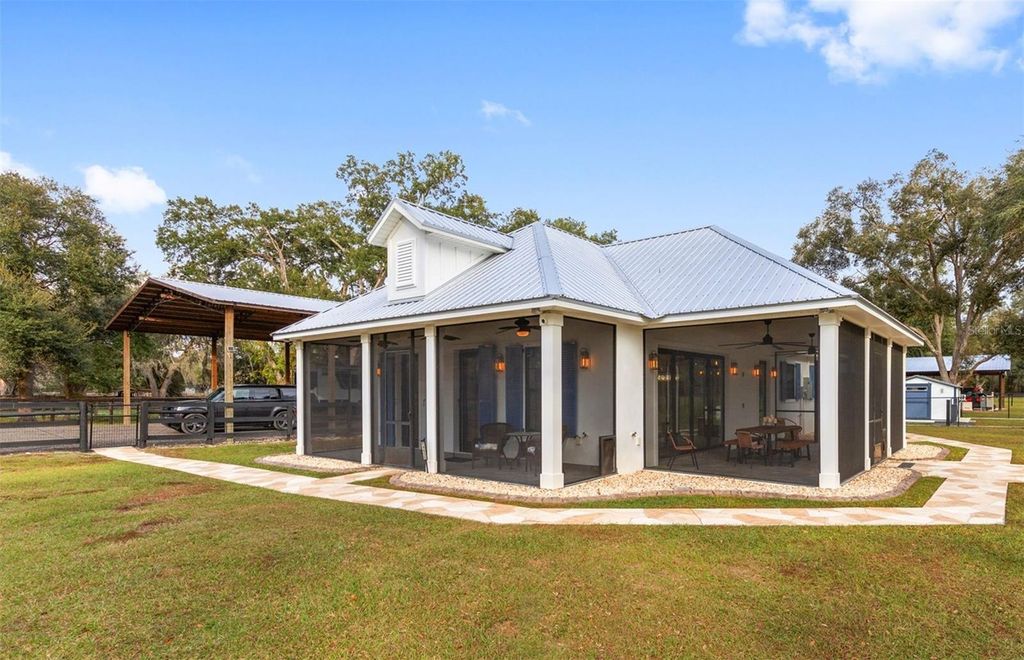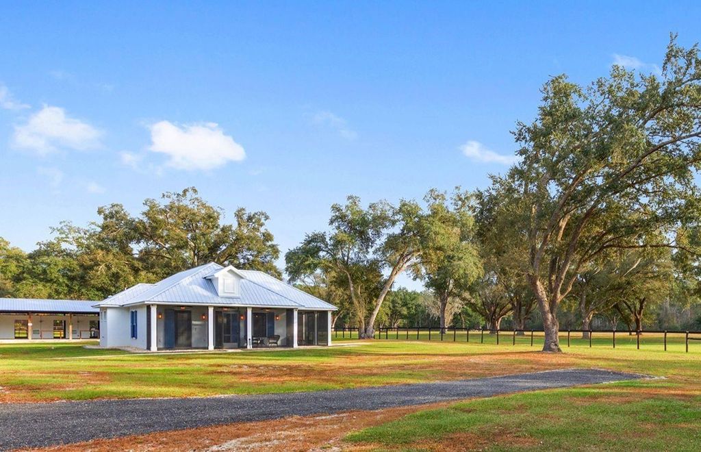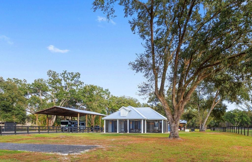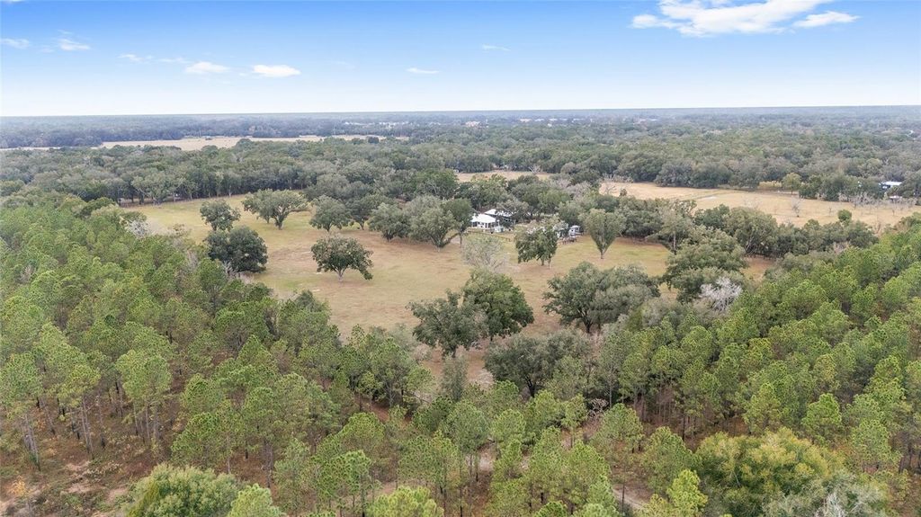 Exceptional 20+ acre luxury farm estate offered as two seperately deeded 10.118-acre AG1 Code 8 parcels sold togeher, providing rare flexibility to build up to three additional residences. Ideal for a luxury equestrian estate, training facility, a multigenerational compound, AirB&B, SniffSpot, investment opportunity, or future resale of one parcel. No HOA and no deed restrictions (all details to be verified by buyer with Marion County). Privately tucked beneath a professionally maintained oak canopy, the property features direct gated access to Ross Prairie State Forest, with miles of protected, non-motorized horseback riding trails connecting directly to the Marjorie Harris Carr Greenway-an unmatched location for equestrians and outdoor enthusiasts. The 2023 custom Southern Living-style concrete block residence showcases timeless design and high-end finishes throughout, including 10-14 ft. ceilings, 8 ft. doors, custom cabinetry leathered double thickness chiseled edge dolomite counters, Cafe' appliances, and luxury LVP flooring. A 12 ft. Nanawall bi-fold door opens the living space to one of three tiled, fanned, screened porches, creating seamless indoor/outdoor living. The primary suite offers a spa-like bath with soaking tub, full-body shower jets, and glass block windows. The second bath also includes full-body shower jets, custom cabinety and glass block windows. Energy efficiency is enhanced by an ultra-quiet Trane mega-split HVAC system with whole-house electrostatic air cleaner. Equestrian amenities include a 40 x 80 concrete block barn with three stalls, automatic waterers, hot/cold wash, insect misters, high-volume fans, sand runs, and a climate-controlled 40 x 12 foot tack room with a utility sink and washer/dryer hookups. Two full 50A RV hookups and two partial hookups under the 40 x 60 foot, 14' high RV/car/boat cover make recreation easy. A fifth power/water RV hookup is nestled behind the barn. A 20 x 12 foot workshop/storage shed and a 40' high cube storage container - both with electrical power - provide ample storage and workshop capacity. Full perimeter fencing, underground utilities, whole property water treatment, a reverse osmosis system and two independent 26k W generator back up systems with an owned 1,000 gallon propane tank complete this truly exceptional offering.