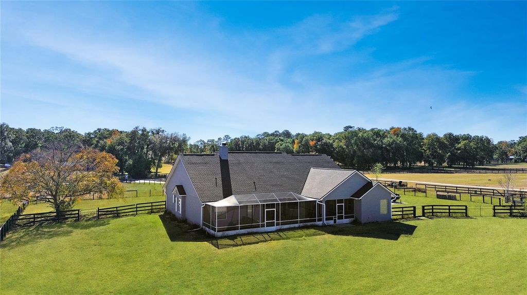 Stunning Custom-Built Home in Cross Tie Ranches - NE Ocala, FL Nestled in the picturesque Cross Tie Ranches subdivision of NE Ocala, this beautifully designed 4-bedroom, 3-bathroom home with a den offers 2,619 sq. ft. of living space on 4.29 acres, perfect for those seeking a blend of luxury and equestrian living. This well maintained property features four paddocks, ideal for horse enthusiasts, and is just 15 miles from the renowned World Equestrian Center. Inside, you'll find high vaulted ceilings, a cozy wood-burning fireplace, hardwood, upgraded laminate and tile flooring throughout the home and a thoughtfully updated split-bedroom floor plan. The 4th bedroom and 3rd bath can serve as a private in-law suite, offering additional flexibility and privacy. The heart of the home is the kitchen and breakfast nook which overlooks a large and open main living area as well as the large screened lanai that runs almost the entire length of the back of the home. French doors lead to the Primary Bedroom Suite, which boasts a sitting area, lanai access, a walk-in closet, and a spacious primary bath complete with a walk-in shower with dual showerheads and a jacuzzi tub for ultimate relaxation. A large side entry garage offers lots of storage space. A separate side from outside or enter through the garage into the inside laundry / mud room so you can clean off before entering the main living area of the home. Recent upgrades include a new roof (2023), new AC (2022), and a kitchen renovation (2021) complete with elegant granite countertops. Flooring throughout the home consists of hardwood, upgraded vinyl plank installed in the living, dining, entryway and office in 2025, and tile, ensuring both beauty and durability. Experience the perfect blend of modern upgrades, timeless charm, and peaceful country living"”all within easy reach of Ocala's equestrian and outdoor lifestyle.