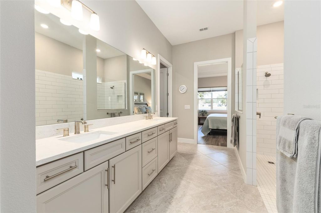 Live the Lifestyle You Deserve in this home with priceless golf course views and coveted water vistas in the gated 55-plus Stone Creek golf community with world-class amenities. This nearly new three-bedroom, three-bath Stellar model home includes a versatile flex room and elegant designer finishes throughout. Positioned on a premium lot overlooking the 14th green, this thoughtfully crafted residence offers comfort, beauty, and a lifestyle designed for relaxation and connection. From the moment you arrive, you'll notice the lush landscaping, stacked stone curbing, paver-lined driveway, and charming Craftsman details. A sense of spaciousness greets you in the open-concept design, where lofty ceilings and soft natural light create an atmosphere of refined ease. Luxury vinyl plank flooring flows throughout, framing a versatile living space ideal for both quiet reflection and stylish entertaining while enjoying the scenic views. The gourmet kitchen features quartz countertops, soft-close cabinetry with pullouts, an upgraded stainless steel appliance package with a Bosch refrigerator, a sizeable walk-in pantry, and reverse osmosis water filtration. A large island flows into the spacious gathering room, where pocket glass sliders open to a screened lanai and paver patio perfect for enjoying Florida's sunshine or hosting friends. The owner's suite is a true sanctuary, offering serene views, abundant natural light, a spacious walk-in closet, and a luxurious en suite bath. Pamper yourself in the spa-inspired bathroom, complete with a large, comfort-height double sink vanity and a tile-lined Roman-style walk-in shower with a transom window and seating ledge. Designed for versatility, the front guest bedroom with a bay window offers privacy with an en suite bath, while the second guest bedroom provides flexible space for a home office or hobby room. Additional comforts include a laundry room equipped with a laundry tub, cabinets for storage needs, and a folding area. A convenient catch-all mudroom leads to the three-car garage with epoxy-covered flooring, a dedicated EV charger, overhead storage, and ample space for a golf cart or workshop. This exceptional home is more than just a place to live; it's a gateway to an active and engaging lifestyle featuring a 24/7 staffed gated entrance for security and peace of mind. Luxury-inspired amenities include heated pools, a state-of-the-art fitness center, a spa, and relaxing hot tubs and saunas. Stay active with pickleball, bocce, tennis, and a softball field, while a dedicated lifestyle staff curates entertainment, activities, and special events to foster connections. Just beyond the gates, enjoy a golf course, pro shop, and restaurant"”perfect for socializing and unwinding. Whether you're looking to relax, explore, or connect, this home is your gateway to it all.