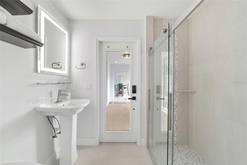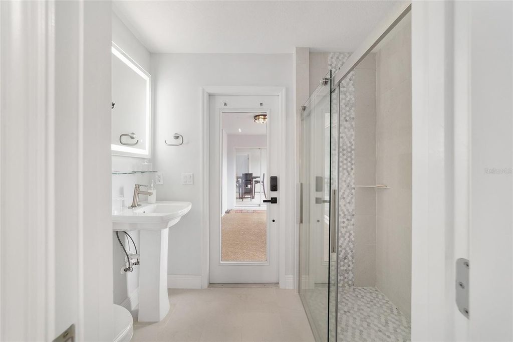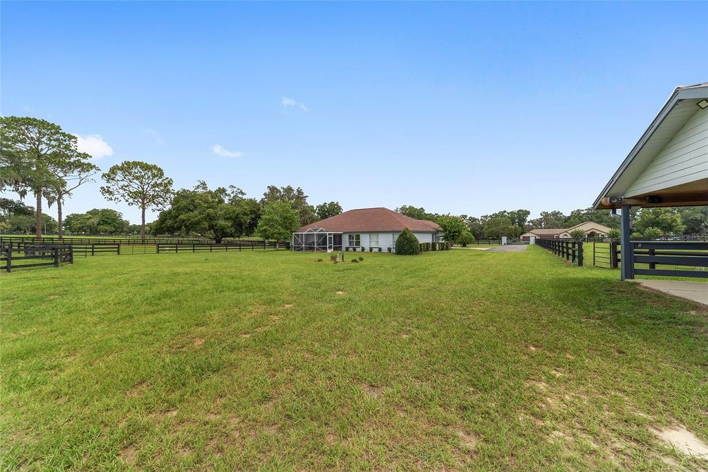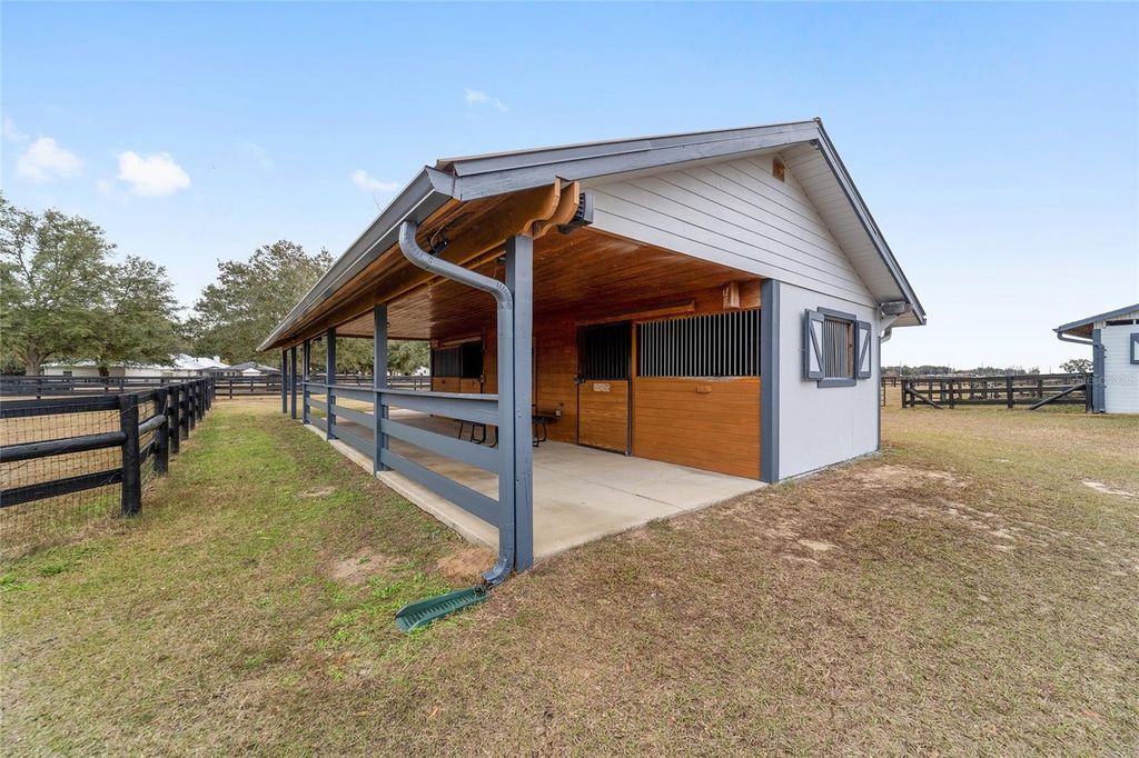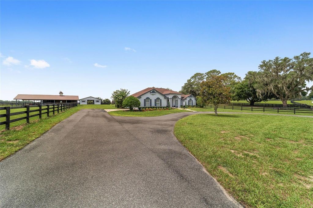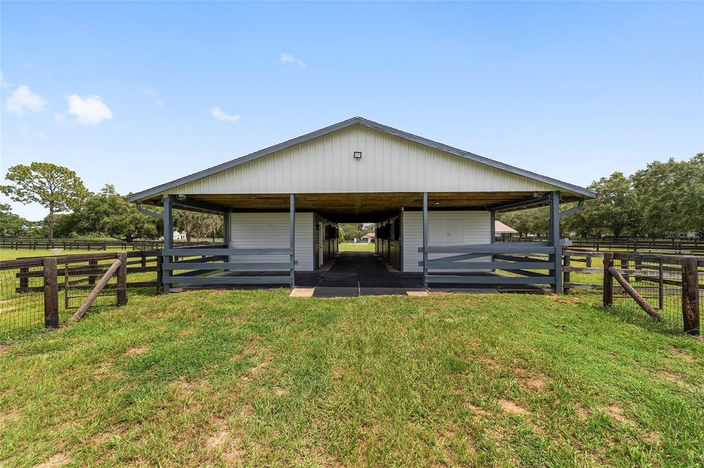 This beautiful 6+ acre farm is located just minutes to WEC, in the gated community of Saddelbrook Equestrian Park. The community provides the perfect place to live your equestrian dream including a beautiful bridle path around the community for endless riding opportunities. This beautifully updated farm welcomes you with its grand gated entrance and circular driveway. The delightful home was just completely renovated and updated with all new finishes, large format tile throughout the home, new wall of cabinets in the kitchen, walk in pantry and a 14 foot island that can seat 8 with double sided cabinets for tons of storage. Quartz countertops in the kitchen, baths and laundry. New appliances with 48" built in refrigerator, beverage and wine cooler, and induction stove top. Master bath is a true spa experience with a 3 person sauna and large walk in shower with room for 2 shower heads and floor to ceiling shower glass walls. Master bedroom has 2 large walk in closets and all 4 bedroom closets have new built in shelving and storage. New washer and dryer in the laundry room with full built in utility cabinets. Plantation shutters and solid wood 3 panel doors throughout. You will fall in love with the light and bright, open floorplan. The home also has a separate office/den space and lovely screened patio overlooking the farm landscape. Your horses will also enjoy all of the comforts of the 7 stall center-aisle barn features auto water in each stall, fly spray system, tack and feed rooms, and also provides a covered area for equipment storage. The farm also features a second 2 stall barn complete with a nice tack room and oversized stalls. The acreage is fenced and currently has 4 large paddocks with plenty of room to add an arena if desired. Don't miss this one of a kind property and experience the Florida horse lifestyle!