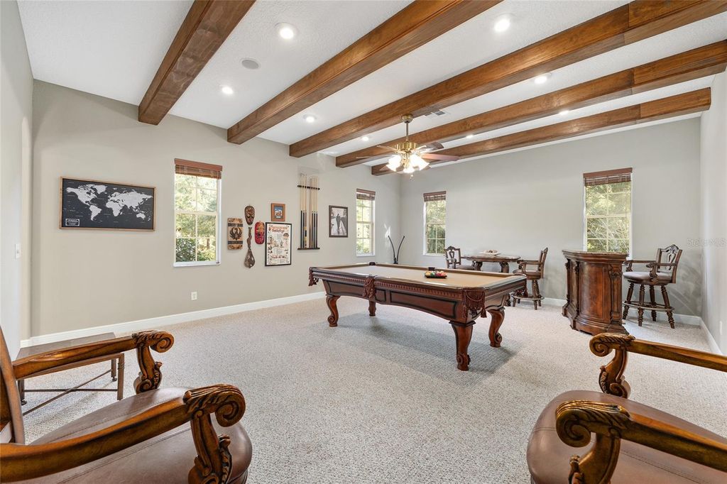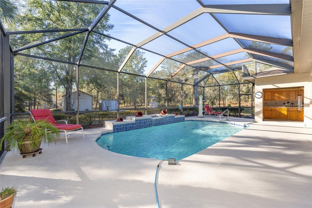 Expansive Rainbow Springs estate on double lot with pool, game room and community Rainbow River access. Welcome to a rare opportunity in the heart of Rainbow Springs Country Club, The Forest Section, where lifestyle, space and sophistication converge. On a desired double lot, this impressive four-bedroom, three-bath residence spans over 3,100 square feet and offers the kind of privacy, scale and amenities discerning buyers seek. The moment you arrive, you'll appreciate the large extended driveway, and sense of space that only a double lot can provide. Inside, soaring coffered ceilings, elegant crown molding, and expansive living areas set the tone for refined yet relaxed living. The chef's kitchen features granite countertops, updated appliances and abundant storage, while the oversized primary suite offers a spa-like bath with garden tub, walk-in shower and dual vanities. A standout is the massive bonus room, ideal as a trophy room, game room, home theater or multi-generational suite. Whether you're entertaining or unwinding, the screened saltwater pool with new heater, chlorinator, and pump invites year-round enjoyment. The outdoor kitchen and grill area make alfresco dining effortless. Recent updates include 2021 roof, updated windows and new irrigation control system. As a resident of Rainbow Springs Country Club, you'll enjoy access to a full suite of amenities such as a clubhouse with restaurant and bar, tennis and pickleball courts, fitness center, community pool and private owners-only beach on the Rainbow River, ideal for kayaking, swimming or simply soaking in the natural beauty. This is more than a home, it's a lifestyle. With acreage-style breathing room, resort-level amenities and a prime location just minutes from downtown Dunnellon, this property is ideal for those seeking elegance, elbow room and everyday adventure.
