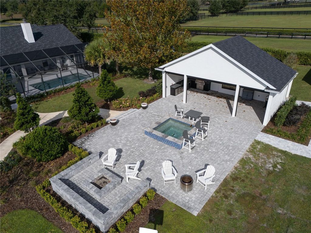 Just minutes from world-class equestrian venues, this 10-acre fully fenced estate offers versatility, charm, and exceptional convenience. Located 10 minutes to the World Equestrian Center and only 5 minutes to Golden Ocala, the property combines an ideal location with thoughtful design and extensive amenities for both homeowners and equestrians. A tree-lined driveway welcomes you onto the property and sets a beautiful tone as you approach the heart of the estate. Toward the back of the acreage sits a spacious 6-stall barn featuring rolling doors, washracks, a tack room, laundry room, bathroom and a comfortable apartment/office area. A separate barn kitchen is centrally located within the barn,ideal for convenience during long days on the property. There is also ample parking space for equipment. Just beyond the barn, riders will appreciate the clay-footing riding arena and surrounding paddocks. The main home offers an inviting layout with 4 bedrooms, 2 full baths, and 1 half bath, and an office. High ceilings and a centrally placed fireplace bring character and warmth to the living space, while select bedrooms feature soft carpeting for added comfort. The kitchen is complete with updated appliances, a butcher block island, and a charming breakfast nook that frames views of the pool. The back porch flows seamlessly to the screened-in saltwater pool, creating an elegant outdoor living space. Outside the pool enclosure, a paved walkway leads to a tranquil outdoor retreat that includes a spa, firepit, seating area, and a covered outdoor kitchen for gatherings and enjoying Florida's beautiful weather. A small pool house provides convenient storage for outdoor and pool essentials. For added versatility, the property also includes a studio apartment within the garage, complete with a full kitchen,full bathroom, and laundry area, an excellent option for guests, staff, or rental income. Move-in ready and thoughtfully outfitted for equestrian living, this property blends comfort, convenience, and rural elegance in one of Ocala's most desirable locations.