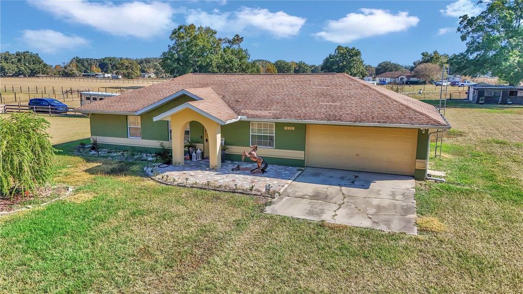 Welcome to peaceful country living, just minutes from every convenience. On three acres, this well-maintained three-bedroom, two-bath block home blends modern updates with the charm of a rural lifestyle. Go inside to an inviting split floor plan featuring fresh interior paint, tile and vinyl plank flooring throughout, and both a living/dining room combo with an electric fireplace plus a separate family room, ideal for flexible living and entertaining. The renovated kitchen and baths offer a contemporary feel with stylish finishes, while a new roof will be installed prior to closing, ensuring peace of mind for years to come. Equestrian or hobby-farm buyers will love the four-stall shed barn, additional carport and ample space for horses, equipment or future expansion. Enjoy privacy and quiet of country life while remaining close to shopping, dining and major highways for easy commuting. This property offers the best of both worlds, comfort, acreage and thoughtful updates in an ideal Summerfield location.