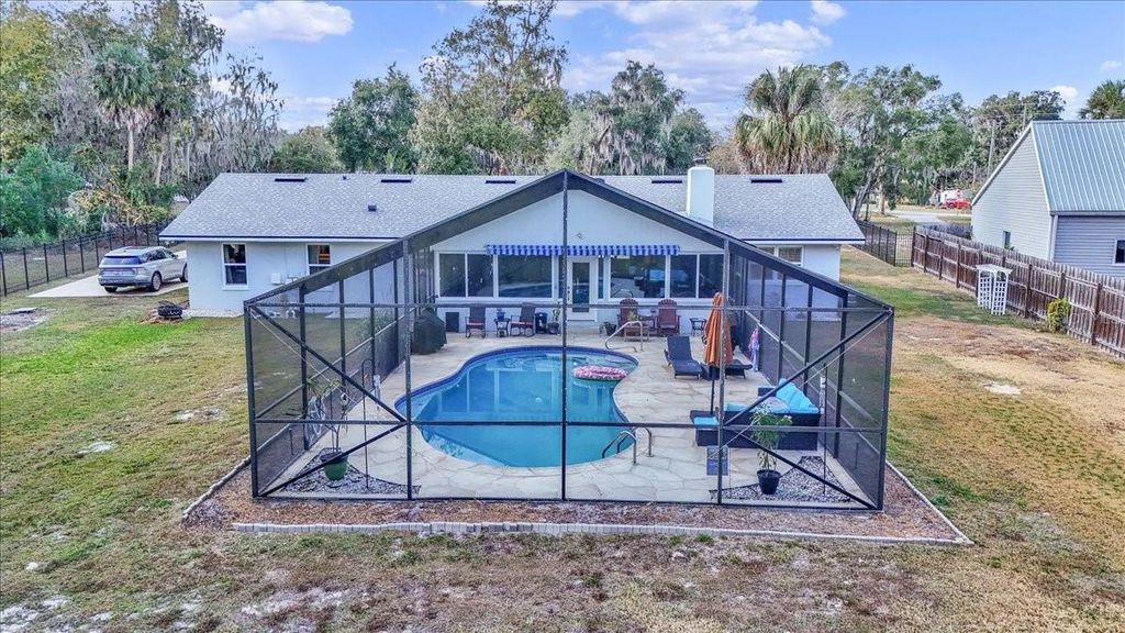 Completely Updated Saltwater Pool Home on the Tsala Apopka Chain of Lakes!!! Welcome to your dream retreat"”an exquisitely updated saltwater pool home nestled on just under an acre of fully fenced, gated property along the stunning Tsala Apopka chain of lakes. Property boasts 3 bedrooms, 3 bathrooms and over 2700 square feet of living space. This beautiful home blends modern upgrades with timeless charm, offering both privacy and waterfront living at its finest. Step inside to an inviting open floor plan featuring luxury vinyl plank flooring throughout, warm wood-beamed ceilings and a cozy fireplace that sets the perfect tone for relaxed Florida living. Abundant windows with plantation shutters fill the home with natural light and frame tranquil views of the surrounding landscape. The chef's kitchen is truly the heart of the home"”showcasing solid wood cabinetry, granite countertops, double built-in ovens, a farmhouse-style sink, along with a center island with cooktop and pot filler. Whether you're entertaining or preparing everyday meals, this kitchen is designed to impress. The spacious primary suite offers a peaceful escape with its en-suite bathroom, walk-in closet, and a custom built-in dresser with TV space for added convenience and style. A split bedroom layout provides two generously sized guest rooms"”ideal for visitors, family or a home office setup. The sun room and extra dining area overlook the sparkling saltwater pool and have incredible lake views, creating seamless indoor-outdoor living and perfect flow for gatherings. Outdoors, enjoy the Florida lifestyle with plenty of room to roam, play or relax. This acre property is adorned with two orange trees, a lemon tree, a banana tree, two fig trees, a peach tree and an Argentina grape tree! With nearly an acre of land, a secure gated entry, and access to the iconic Tsala Apopka lakes, this home delivers a rare combination of comfort, luxury and adventure! Property is less than 5 minutes from historic downtown Inverness Liberty Park, nature trails, farmer's markets, resaurants, medical offices & MORE!