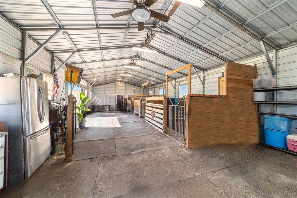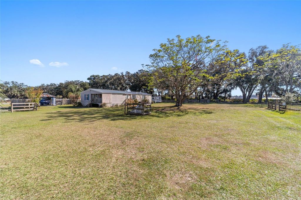 Welcome to this charming 3-acre mini farm that blends upgraded comfort with practical functionality. This 1,670 square foot home has been thoughtfully renovated with a new metal roof, fresh interior paint, and luxury vinyl flooring throughout. A spacious open layout ties the living, kitchen, and dining areas together, making this home ideal for both everyday living and entertaining. The heart of the home is the beautifully remodeled kitchen, featuring upgraded granite countertops, glass tile backsplash, a built-in pantry, and modern cabinetry. A large island provides ample prep space and bar seating, while a window above the sink offers peaceful views of the barn and back pasture. The living room features a white brick wood-burning fireplace that adds warmth and character, while sliding glass doors from the adjacent porch welcome natural light and convenient outdoor access. The home offers two generous living areas: a formal living room with direct backyard access, and an open-concept family space anchored by the kitchen. The master bedroom is oversized with a walk-in closet, and an ensuite bathroom featuring double sinks and a brand-new wallk in shower. Additional bedrooms are nicely sized, and the updated guest bath ensures comfort for everyone. A cozy side porch with sliding glass doors expands your living space and is perfect for morning coffee or relaxing evenings. Step outside into your fenced backyard oasis, complete with a cabana grilling area"”ideal for hosting friends or enjoying peaceful countryside evenings. Beyond the backyard lies your horse-ready setup. The 60'x24' metal barn includes 4 stalls that open out the back for easy turnout, two roll-up doors for great airflow, a covered wash rack, and ample space for storage, tack, or even additional stalls. A separate storage building and a chicken coop offer added versatility for livestock or hobby farming. This property is fully fenced with three separate paddocks and a round pen, providing a great setup for equestrians or hobby farmers. The lush pasture offers plenty of grass for grazing, and the layout allows for easy rotation. The location is ideal"”just 5 miles to I-75, 5 miles to Florida Horse Park for trail riding and events, less than 14 miles to The Villages, and only 23 miles to the World Equestrian Center. Whether you're looking for a move-in-ready mini farm, an equestrian retreat, or simply a peaceful place to call home, this beautifully updated property offers it all. Don't miss your chance to own a turn-key farm in a fantastic Central Florida location.
