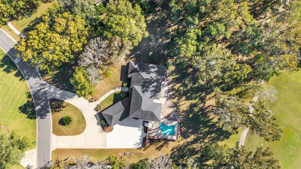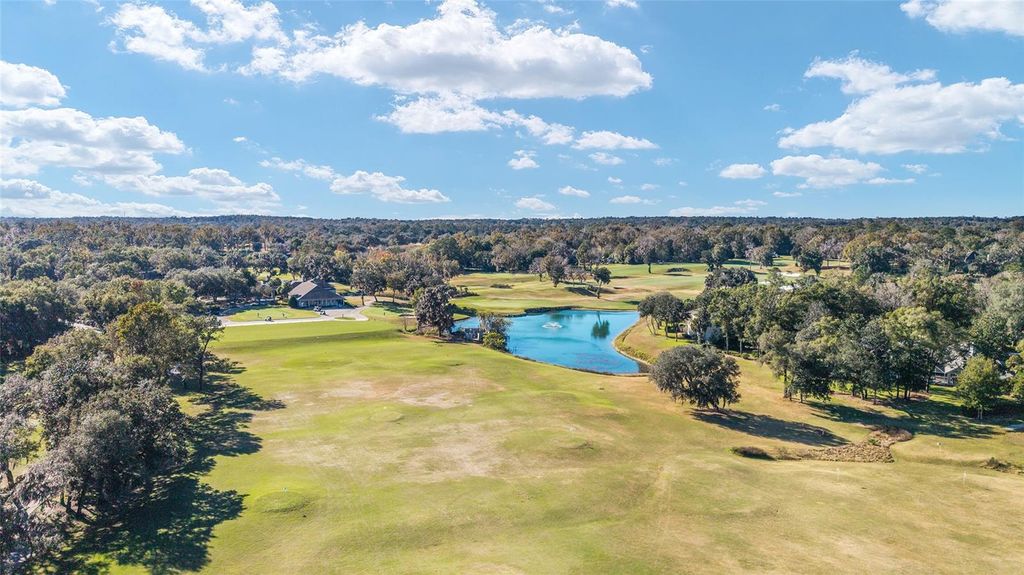 Welcome to this charming two-story red brick home tucked along the back of the driving range in the sought after Country Club of Ocala, offering unmatched views straight down to the clubhouse. If you love golf or have golfers in the family, having a driving range and full practice center right in your backyard is an incredible bonus! Inside, the home offers a comfortable and well-designed layout with 4 bedrooms and 3.5 bathrooms, along with a 3 car garage. The spacious primary suite is located downstairs and features an attached den/office, perfect for working from home or enjoying a quiet reading space. A second bedroom with its own full bath is also conveniently located on the main floor. Large picture windows throughout the main living areas fill the home with beautiful natural light and capture peaceful views of the oversized backyard and golf practice area beyond. The kitchen includes a center island and a cozy breakfast nook overlooking the grounds, while the formal living room with a gas fireplace and separate dining room offer wonderful spaces for hosting. Situated on almost 2 acres, this property provides a great backyard. Upstairs, a generous family room with built-in cabinetry and an additional room with its own bar both open to a lovely balcony, an inviting spot to soak in the panoramic golf views. Two additional bedrooms share a Jack-and-Jill bath, creating a perfect layout for family or visiting guests. Whether you're raising a family or a true golf enthusiast seeking the ideal setting, this has an unbeatable location. Roof was replaced in 2019, a/c unit in master in 2015 and main unit in 2016 and hot water heaters replaced in 2017 and 2019.