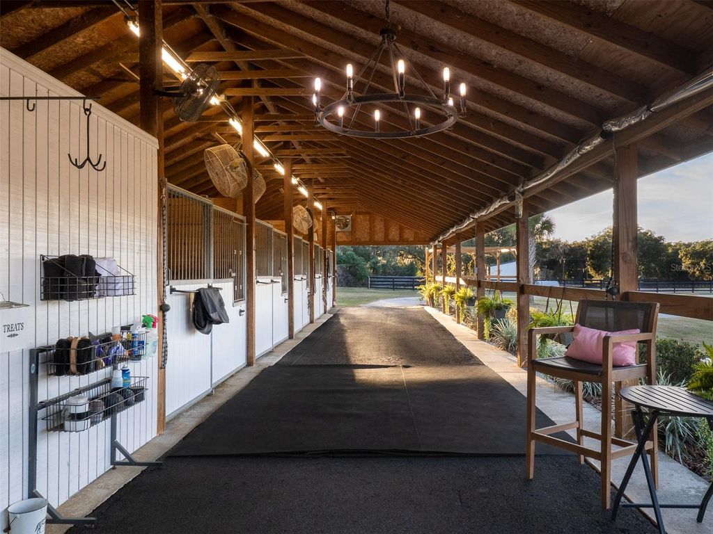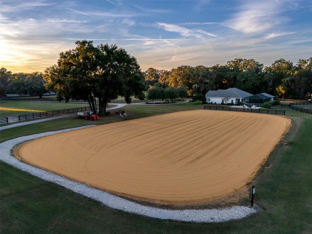 Nestled just off Highway 441 in Citra, this exceptional 11+ acre farm offers a seamless mix of practical features, inviting spaces, and classic Florida appeal! This fully fenced property is ideal for any equestrian operation and is thoughtfully laid out with seven paddocks, a round pen, and an arena with sand and clay footing. The barn includes five stalls, a tack room, feed room, wash rack with hot water, ample equipment storage, and even a convenient 1-bedroom, 1-bathroom apartment complete with a kitchen. The main home is warm and welcoming, designed with both comfort and style in mind. It features 3 bedrooms, 3 bathrooms, an office, a formal living room, and a great room filled with natural light from large windows and enhanced by high ceilings that create an open, airy feel. The cozy kitchen, equipped with updated appliances, offers an inviting space for everyday meals or weekend gatherings. The beautifully renovated master suite feels like a private retreat with its walk-in shower, large soaking tub, and walk-in closets, providing a peaceful escape at the end of the day. French doors lead from the living area to the back porch, where a screened-in inground pool with a soothing waterfall feature sets the tone for relaxation. Just outside the screen enclosure, the porch transitions to a covered outdoor kitchen and bar, perfect for entertaining friends and family, while a separate paver patio creates a dedicated space for unwinding around the firepit. Additional conveniences include a 2-car garage that offers plenty of room for vehicles and storage. Altogether, this property provides an inviting, well-designed haven ready to support both everyday living and your equestrian lifestyle!