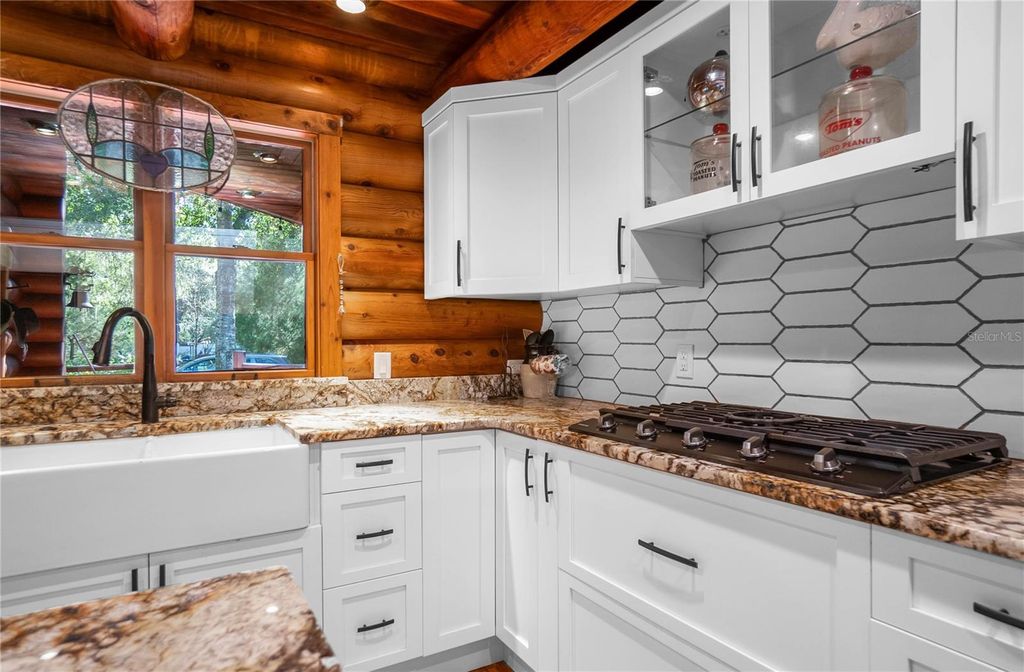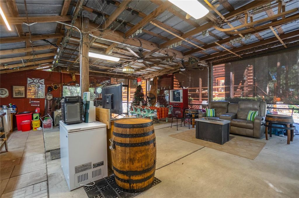 Rustic Charm Meets the Florida Nature Coast-where everyday feels like a vacation! This gorgeous Western Red Cedar log cabin sits proudly on 1.16 acres of waterfront, just minutes from the Chassahowitzka boat ramp. Step inside and fall in love with the warmth and craftsmanship"”soaring ceilings, exposed beams, and a floor-to-ceiling stone wood-burning fireplace that sets the tone for cozy evenings. Designed by an architect to capture natural light and highlight the beauty of log-home living, this residence features hardwood floors throughout and was thoughtfully built on a cement slab with 40" clearance for easy access to plumbing, electrical, and ductwork. The heart of the home is the brand-new gourmet kitchen"”a showstopper with double ovens, gas cooktop, granite countertops, soft-close cabinetry with custom slide-outs, under cabinet lighting, and a spacious center island. The cabinetry continues into the utility room, offering additional storage and direct access to the wraparound porch"”perfect for morning coffee, evening sunsets, and year-round enjoyment. Love to entertain? You'll be the host with the most thanks to firepit seating area and a 22x30 screened outdoor kitchen equipped with a stove, large TV, and refrigerator. Overnight guests? No problem"”your RV port fits two units with full hookups, while two 22x24 fully insulated storage buildings provide power, lighting, and ventilation"”ideal for workshops, hobbies, or extra storage. With a covered boat dock, you can fish, kayak, or simply relax and soak in the peaceful surroundings. From peaceful mornings by the water to evenings around the fire, this one-of-a-kind retreat blends rustic elegance, modern upgrades, and true Florida outdoor living. Great opportunity for an Airbnb for those looking for something unique. Homes like this are rarely offered"”don't miss your chance to own a piece of paradise!
