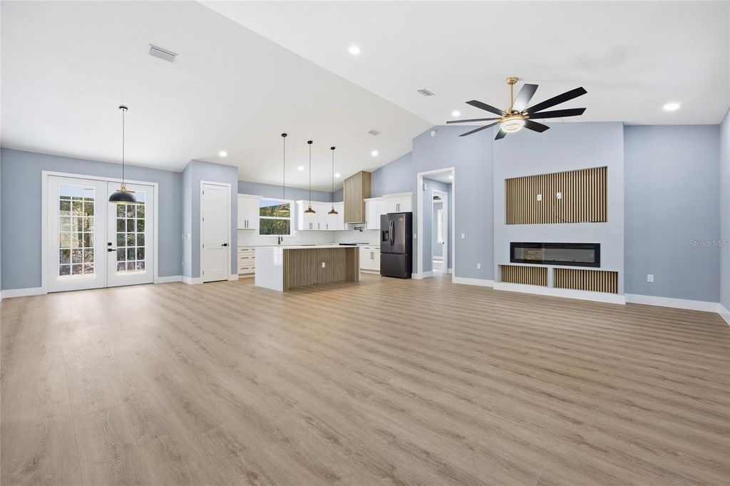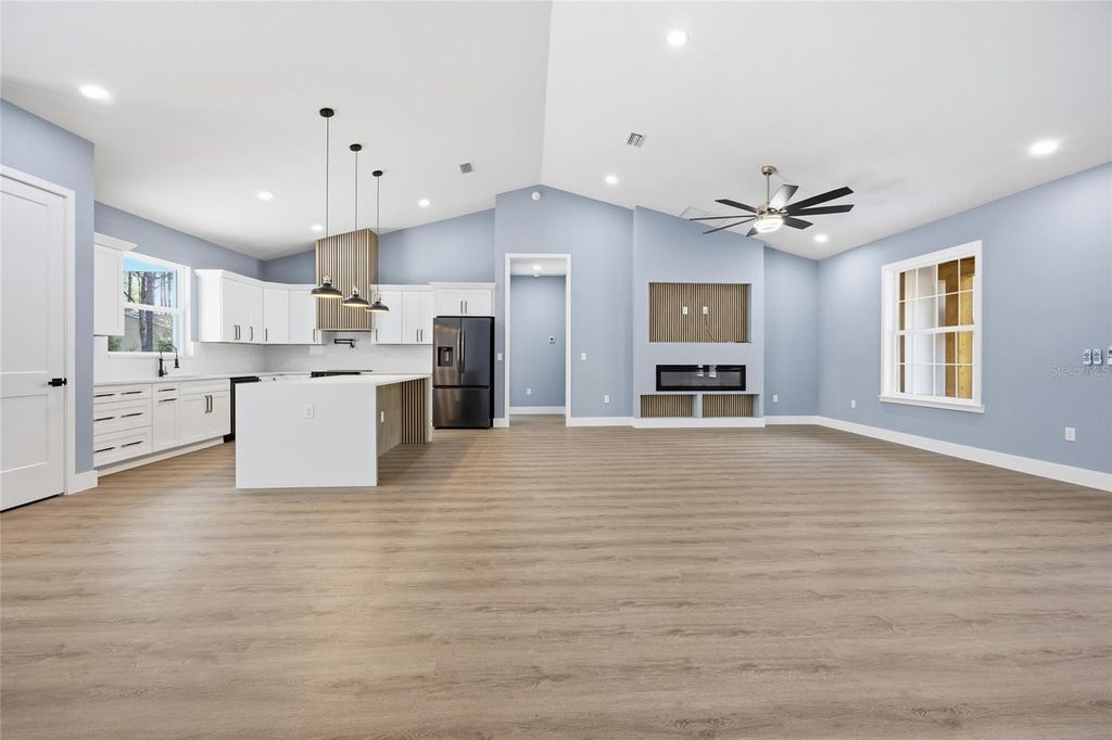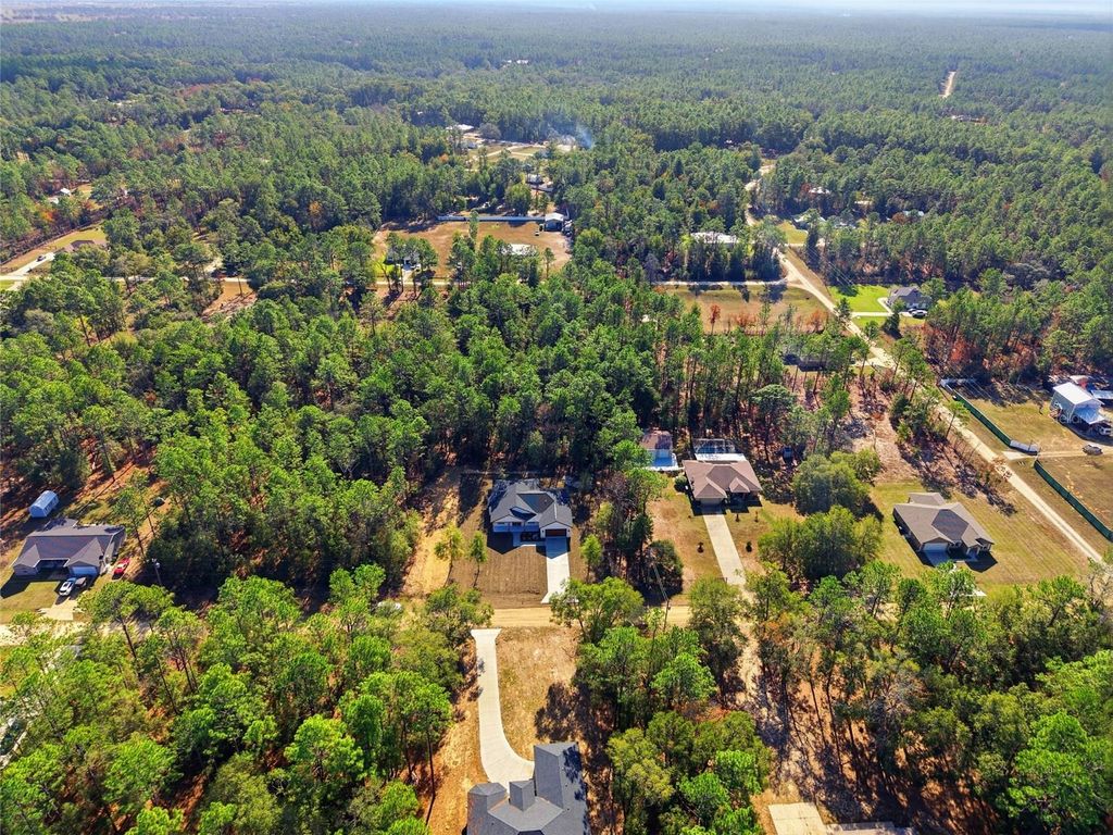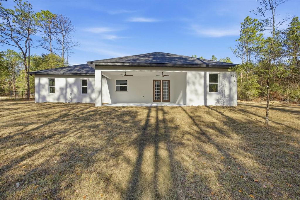 Come check out this beautiful Model. Nestled on a peaceful 1.16-acre wooded lot in the desirable Rolling Hills community, this R-1 zoned property showcases the stunning Martina Model a 4-bedroom, 2-bath farmhouse-inspired home featuring sleek modern-contemporary finishes and an array of upgraded features. Offering 2,073 sq. ft. of thoughtfully designed living space, the open-concept layout effortlessly connects the living, dining, and kitchen areas ideal for both everyday living and entertaining. The living room centers around a stylish electric fireplace, framed by French doors that lead to a large covered lanai for relaxing and entertaining outdoors. The gourmet kitchen is beautifully appointed with premium cabinetry, a center island with built-in microwave, a paneled hood vent, pot filler, stainless steel appliances, and elegant countertops. Throughout the home, waterproof laminate flooring provides both durability and design continuity, complemented by 8' doors that enhance the home's spacious and upscale feel. The expansive master suite offers a peaceful retreat, complete with a luxurious master bath featuring dual vanities, a walk-in shower, and ample space to unwind. Designer lighting and high-end fixtures are found throughout the home though the list of upgrades is simply too long to include. Located just minutes from the World Equestrian Center and Rainbow Springs State Park, this home combines modern luxury with the tranquility of country living. Whether you're a nature lover, equestrian enthusiast, or simply seeking a refined lifestyle in a growing area this home was built to exceed expectations.