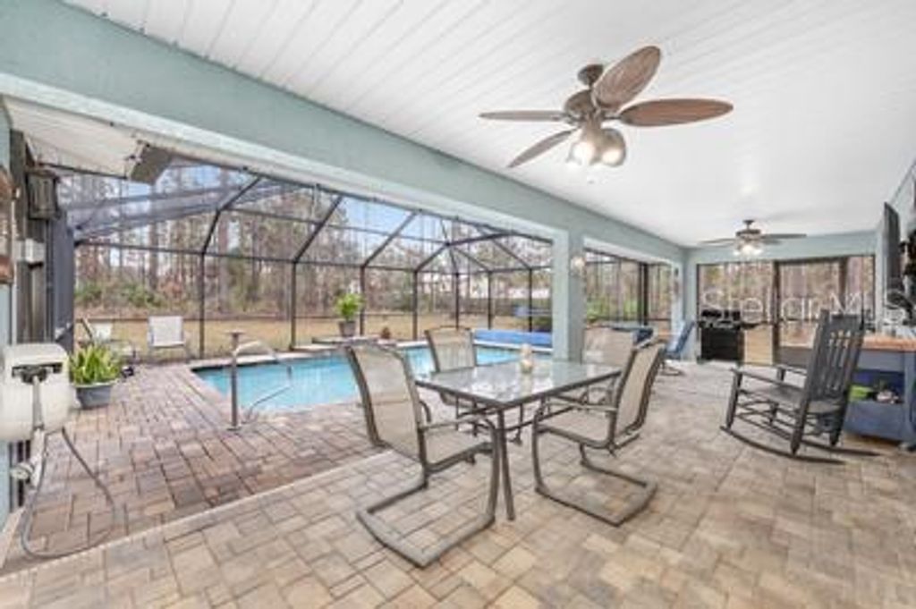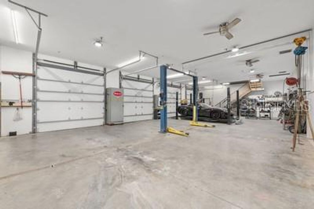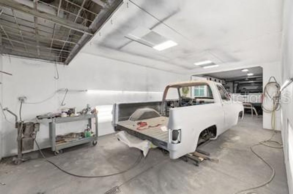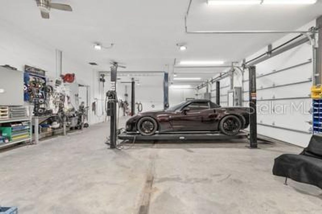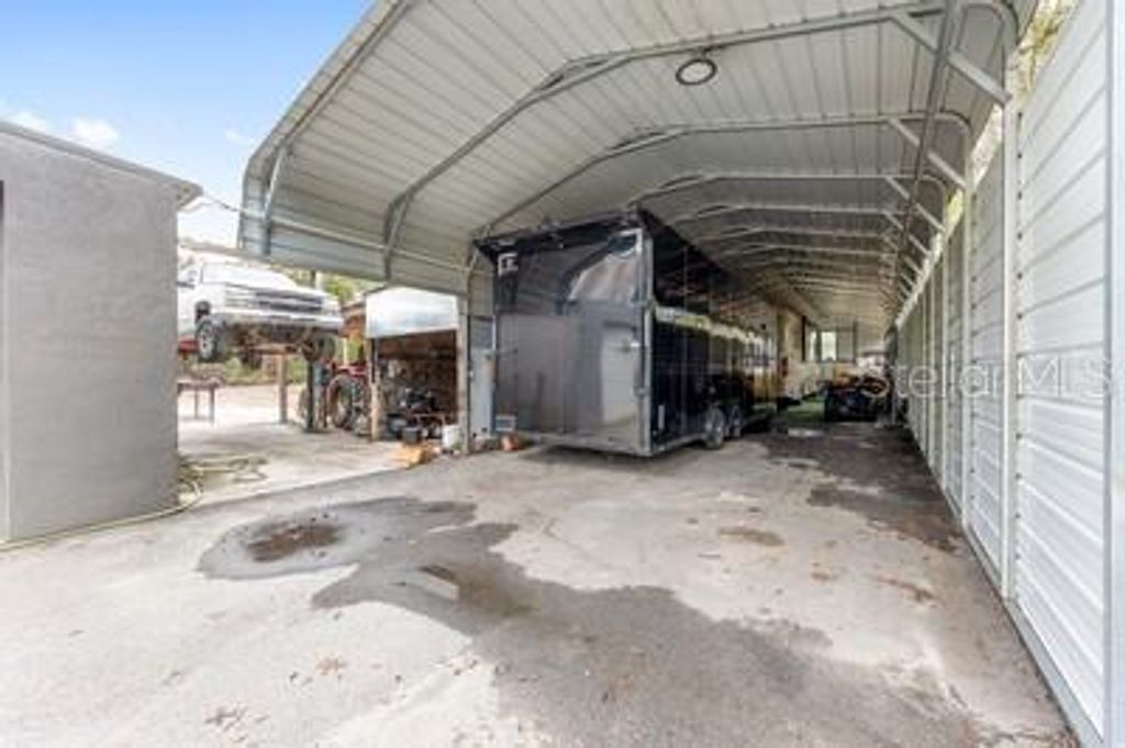 This is a one-of-a-kind opportunity to own a property that seamlessly blends luxurious living with unparalleled space for your automotive passion. Set on a sprawling 2.28-acre double lot, this 4 Bedroom 3 Bath Pool home isn't just a home-it's a lifestyle. With expansive grounds, a stunning pool area, extensive garage and body shop amenities, it offers a rare blend of privacy, space, and functionality. For the car enthusiast or hobbyist, this is more than just a place to live-Its a place to thrive. This property is a car lovers paradise. Discreetly tucked behind what appears to be a traditional 4 car garage is a full-blown automotive haven and a private turn key body shop business. The front shop features four bays (30'x60') with a nearly finished loft (16'x60') complete with a half bath and AC-ideal for a private office or creative workspace. A back room (20'x60') includes a dedicated body shop area with a 26' paint booth and mixing room, providing space under roof and AC for up to six cars. But that's not all-outside, there's even more room to indulge your passion. A large storage barn can accommodate eight additional cars, and there's an 8'x48' storage shed plus a 16'x48' lean-to for even more vehicle storage. The property also includes an RV port with electric, power, and water hookups, making it perfect for RV enthusiasts. The home itself offers luxurious comfort, formal dining, den/office and open kitchen with real wood cabinets, upgraded stainless steel appliances, and plenty of storage, the kitchen is both functional and beautiful. The primary bedroom boast tray ceilings, double sinks, a garden tub, and a shower. Two guest rooms share a Jack-and-Jill bath, while the fourth bedroom has an adjacent bath-ideal for guests or in-laws. The den/office and formal dining room flows into a spacious family room that opens up to the private pool oasis. Pool heated by solar and electric heat pump for year round use. Saltwater pool with beautiful stonework and a waterfall year round, all enclosed in a screened lanai overlooking a serene, wooded area. This is a one-of-a-kind opportunity to own a home that combines residential luxury with unparalleled space for car restoration and storage. A must-see for any enthusiast looking for the perfect blend of comfort and hobby space!