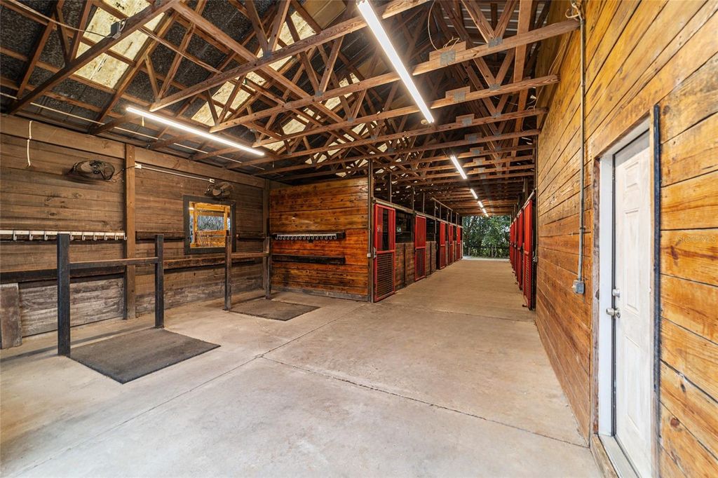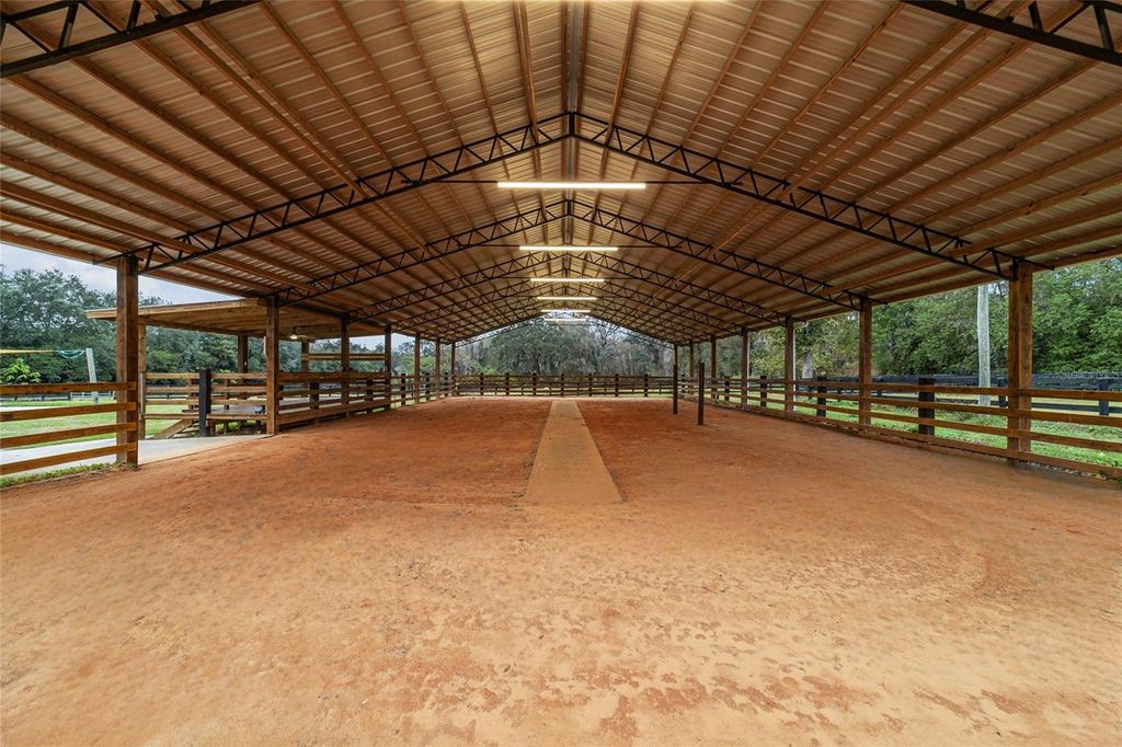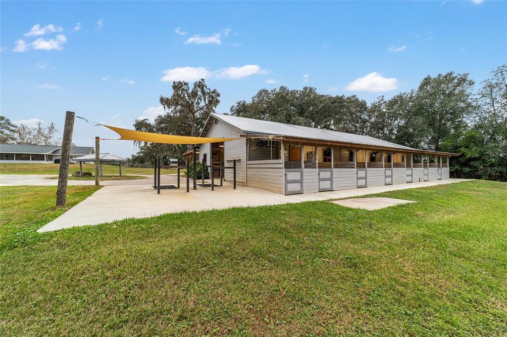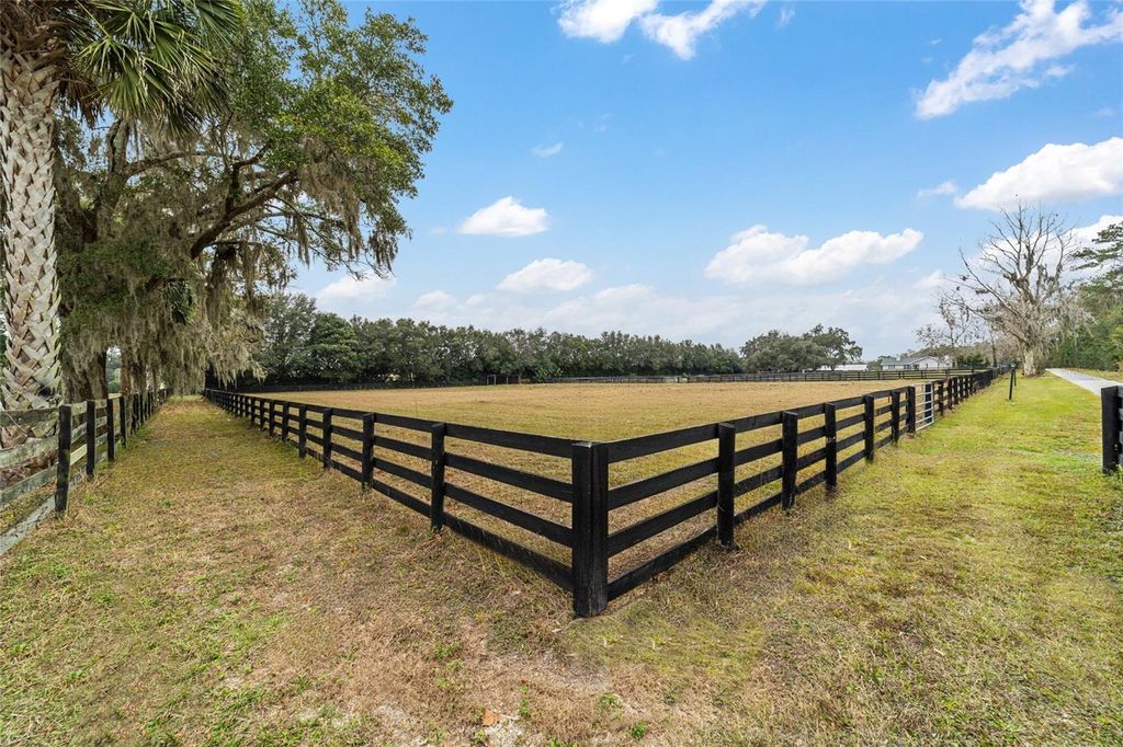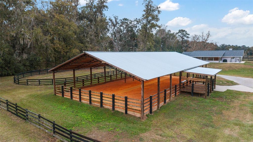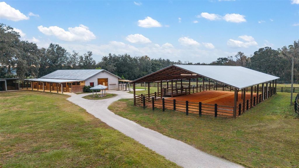 Welcome to this beautifully updated 9.80-acre equestrian farm, ideally located in the heart of Marion County's horse country. From the moment you enter the asphalt-paved, gated driveway, you'll appreciate the peaceful setting, accented by sprawling granddaddy oaks and four-board fencing throughout the property. The concrete block home offers over 3,300 total square feet and has been completely renovated to reflect a modern farmhouse aesthetic. Inside, you'll find new vinyl flooring, fresh paint, and an abundance of windows that flood the space with natural light. The open floor plan connects the main living room, dining area, and large custom kitchen"”perfect for everyday living or entertaining. The kitchen features white shaker cabinets, granite countertops, a gorgeous granite backsplash and stainless steel appliances. The centerpiece of the living area is a floor-to-ceiling whitewashed stone wood-burning fireplace, bringing warmth and charm to the space. The split-bedroom layout ensures privacy, with the master suite offering a peaceful retreat with access to the back screened-in patio, while the master bath includes a tiled walk-in shower, dual sinks, and a generous walk-in closet. There are two additional guest bedrooms and a fully updated guest bathroom. Plus, there's a large bonus room with closets that could serve as a fourth bedroom, office, recreation room, or studio"”whatever fits your lifestyle. The home also includes insta-hot water heaters and a brand-new roof completed in 2025. Step outside to your screened back porch"”an ideal place to relax and unwind while taking in views of your private barn and pastures. The equestrian amenities are designed for serious horse enthusiasts, trainers, or anyone dreaming of a turnkey setup. The 22-stall barn includes 10 stalls in the center aisle show barn and 12 additional shed-row stalls off each wing. Each stall is equipped with automatic waterers and fans, with grooming space inside and four wash racks outside. The barn also features a feed room and a full apartment with a loft and private bathroom"”perfect for staff or guests. Adjacent to the main barn is a concrete pad with a wood storage structure housing a shavings bin, hay storage, and a workshop area. A large metal carport provides shelter for farm equipment, and there's a separate stall ideal for small animals needing extra care, plus a chicken coop for your feathered friends. The riding amenities include a 48x150 covered clay arena with an observation deck, a round pen, two large pastures (that can easily be subdivided), and four additional paddocks, all with ample space for turnout and training. The entire property is thoughtfully laid out for functionality and flow, while maintaining the scenic beauty of a peaceful country retreat. For the outdoor enthusiast, the farm is located directly across from the Santos Greenway Trailhead"”offering miles of trails for biking, hiking, and horseback riding. You're also just 5 miles to the Florida Horse Park, 10 minutes to shopping and restaurants, 16 miles to the World Equestrian Center, and less than 14 miles to The Villages. This is truly a one-of-a-kind farm with the updates, amenities, and location to meet the needs of any rider or rural lifestyle seeker.