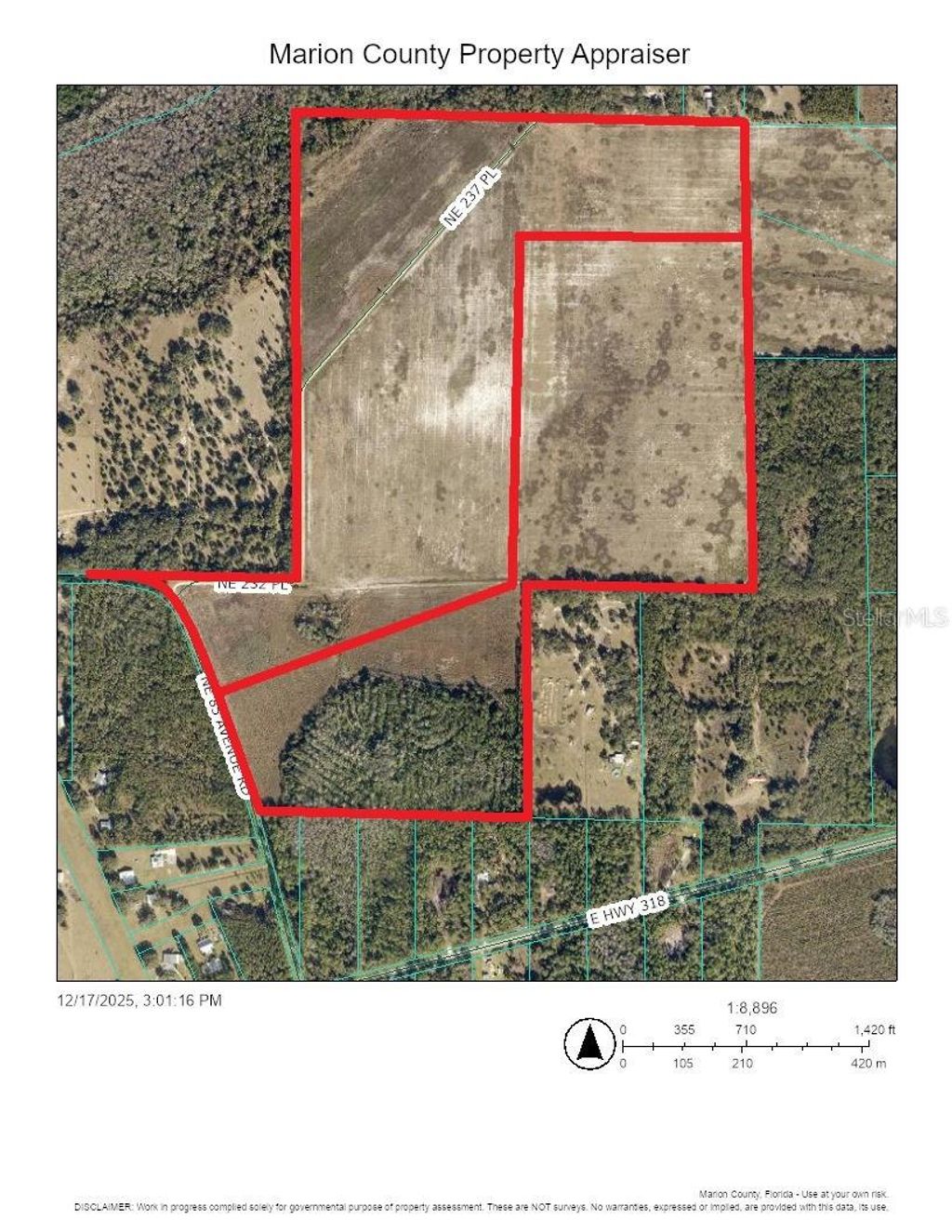 INCREDIBLE OPPORTUNITY!!! 216.48 acres with 8" well, and 1600ft+ paved road frontage on NE 85th Ave Rd. Best priced large acreage in the area. 90ac open farm land, 26ac of woods, 87% high and dry. Ideal for your homestead, cattle ranch, or farming operation. 35 minutes to Ocala, 40 minutes to Gainesville, 5 minutes to Orange Springs Boat Ramp. Zoning: A1 - minimal taxes with agriculture exemptions (approx. $1.56/acre).