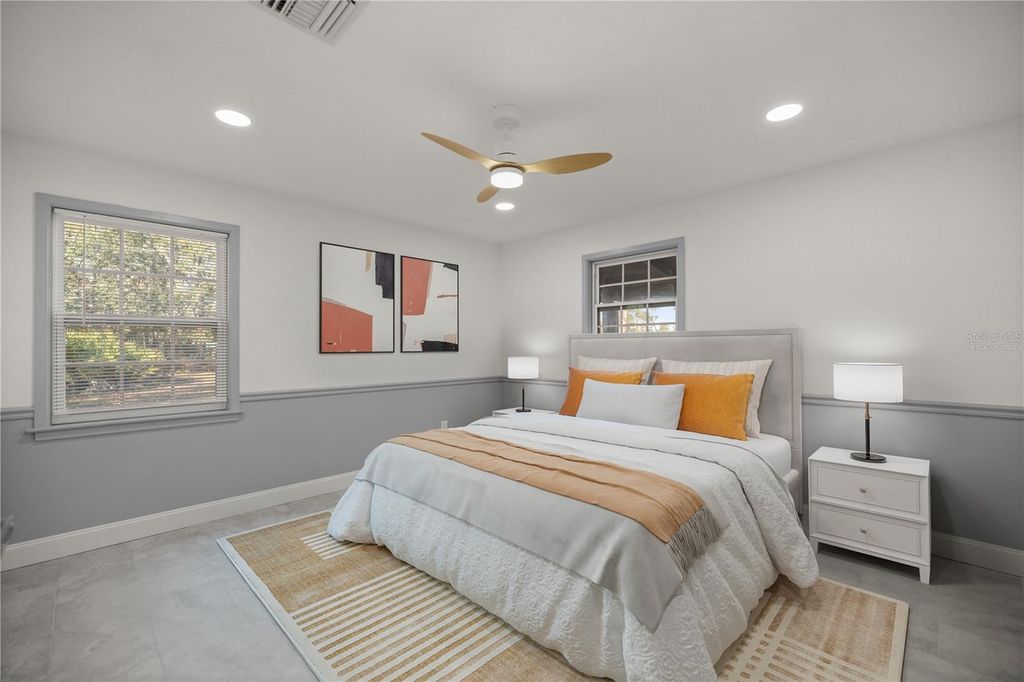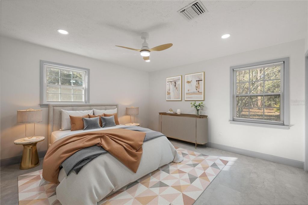 One or more photo(s) has been virtually staged. Welcome to 11921 SE 169th Avenue Road in Ocklawaha, Florida"”an exceptional Marion County property that blends privacy, space, and thoughtful upgrades on a generous 1.35-acre lot. This nearly 2,000-square-foot home offers three bedrooms and three full bathrooms with a rare triple-split floor plan, creating the unique advantage of three primary suites, ideal for flexible living arrangements, guests, or multigenerational needs. A durable metal roof adds long-term peace of mind, while the home's coastal-inspired flair is complemented by partial pond views visible from the oversized screened front porch, perfect for relaxing and enjoying Florida's natural surroundings. Inside, the home shines with extensive updates including new windows, new tile flooring throughout, stainless steel appliances, and all-new recessed can lighting with adjustable color options for customized ambiance. Major system improvements such as a new well pump, new bladder tank, and new hot water heater further enhance confidence in the home's condition. Each bathroom has been tastefully remodeled, offering a clean, modern feel throughout. Outdoors, a spacious 30x16 rear deck provides ample room for entertaining or quiet evenings, while two substantial storage buildings"”approximately 1,000 square feet and 300 square feet"”deliver outstanding functionality rarely found at this price point. Conveniently located in Ocklawaha near Ocala and central Florida amenities, this acreage property offers the perfect balance of peaceful rural living and modern upgrades, making it a standout opportunity for buyers searching for space, versatility, and move-in-ready quality in a Florida home.