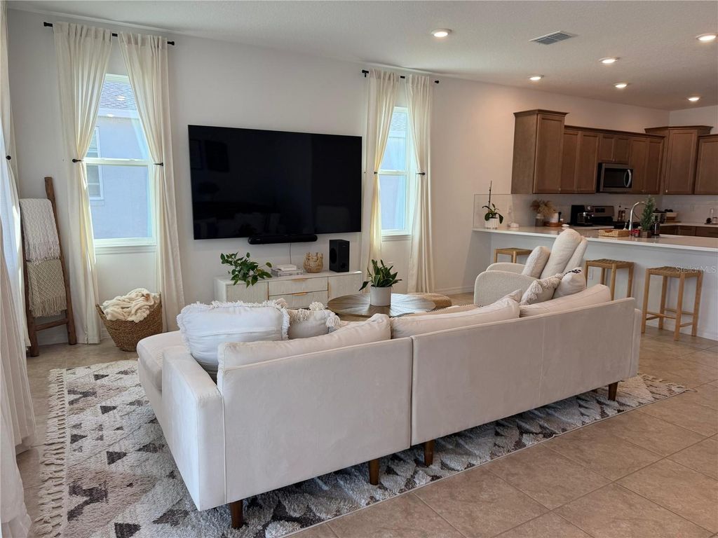 Welcome to this like-new, fully furnished home located in the highly desirable Calesa Township community in Ocala. Built just one year ago, this Currant model offers the perfect balance of modern design, comfort, and convenience"”without the wait of new construction. This thoughtfully designed home features 3 bedrooms, 2 bathrooms, and a versatile flex room, ideal for a home office, media room, or additional living space. The open-concept layout showcases a beautifully appointed kitchen with a peninsula, marble-style countertops, warm natural wood cabinetry, stainless steel appliances, and a gas range"”perfect for both everyday living and entertaining. The home is finished with light ceramic tile throughout, offering a clean, modern look that is easy to maintain. The spacious primary suite provides a peaceful retreat, complete with a private en-suite bathroom featuring dual vanities, modern cabinetry, and a walk-in glass shower. Sold fully furnished and move-in ready, this home includes all furniture, window treatments, refrigerator, dishwasher, microwave, washer, and dryer"”making it an exceptional value compared to new construction options. Additional highlights include a two-car garage, abundant natural light, and access to Calesa Township's resort-style amenities, trails, and green spaces. ?? Seller is offering contribution toward buyers closing costs, making this an outstanding opportunity to secure a nearly new home with immediate availability. ?? Skip the wait, avoid construction delays, and move right in"”this home is ready for you today. "¢ Like-new home built in 2024 - no construction wait "¢ Popular Currant model in Calesa Township "¢ 3 Bedrooms | 2 Bathrooms | Flex Room (ideal for office, den, or media room) "¢ Open-concept floor plan with spacious living and dining areas "¢ Modern kitchen with peninsula, marble-style countertops, and warm natural wood cabinetry "¢ Gas range and stainless steel appliances "¢ Ceramic tile flooring throughout - durable and easy to maintain "¢ Primary suite with dual vanities and walk-in glass shower "¢ Fully furnished & move-in ready (furniture and décor included) "¢ "¢ Ring security system included: Ring video doorbell Interior motion sensor Window sensors installed throughout the home