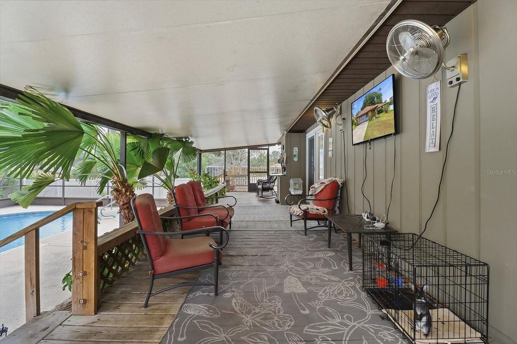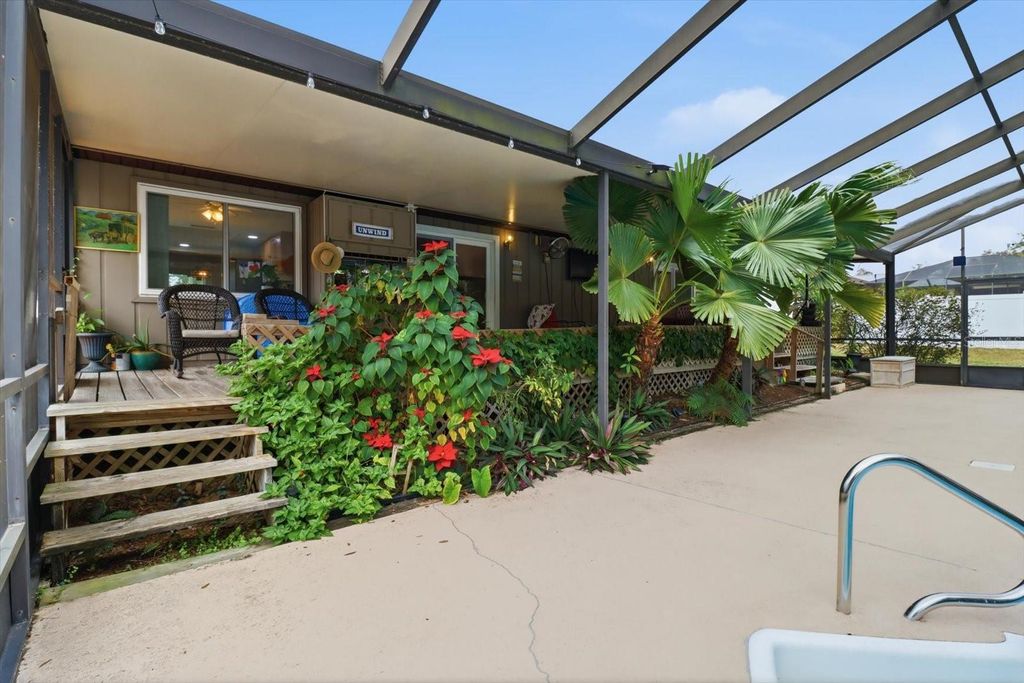 Nestled on the peaceful outskirts of Ocala, this meticulously maintained three-bedroom, two-bathroom pool home offers space, comfort, and true Florida living. Inside, you'll find two separate living areas highlighted by true wood flooring and a cozy fireplace, along with the flexibility of an eat-in kitchen or a dedicated dining space. Just off the kitchen, an open deck porch creates the perfect setup for grilling, hosting, and outdoor dining. Step through the sliding glass doors and into your own private oasis featuring an impressive 600-square-foot covered and screened porch complete with a bar area, all overlooking a lush vegetable and fruit garden filled with pepper varieties, papaya vines, guava tree, and more. Beyond that sits a 30' x 15' in-ground pool, fully screened and enclosed within a white vinyl privacy fence, with additional fruit trees throughout the yard. The owner's suite offers direct pool access through its own sliding glass door and includes dual sinks and an oversized walk-in shower. Two additional bedrooms, a full guest bath, indoor laundry, and a two-car garage round out the interior. Major updates include all-new HVAC and ductwork in 2025, along with a propane-powered Generac generator for peace of mind during Florida weather. Conveniently located near shopping, dining, medical facilities, parks, and major roadways for easy access around Ocala and beyond, this thoughtfully cared-for home is truly move-in ready and packed with features that make everyday living feel like a retreat. Close