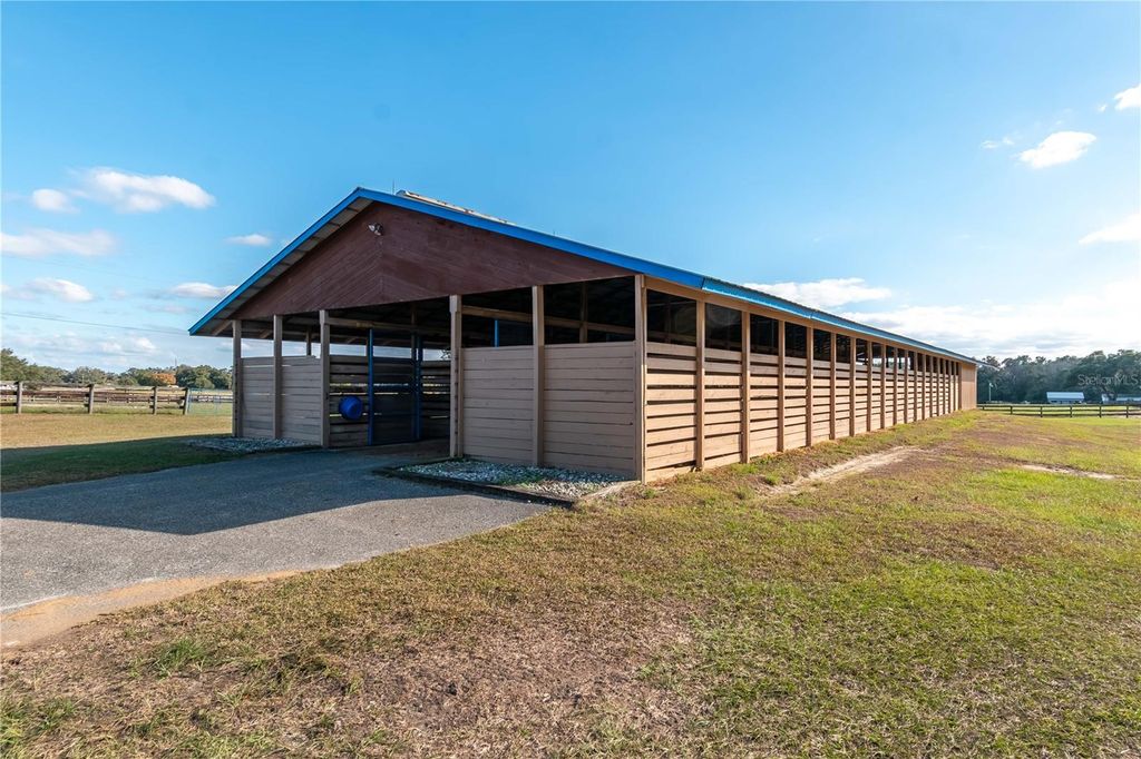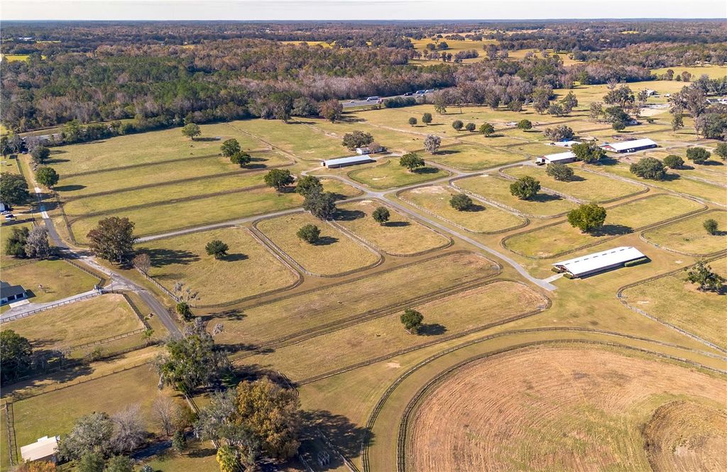 Dreaming of taking your equestrian venture to the next level? Welcome to this extraordinary 100-acre farm, where turnkey infrastructure meets peaceful countryside living! Nestled just a short drive from both HITS and the World Equestrian Center (WEC) and just minutes from Ocala and I-75, this property is perfectly positioned to take advantage of everything Ocala has to offer. The property features multiple gated entries, each following a paved driveway that continues throughout the property to ensure smooth access to every portion of the farm. Rolling green pastures and paddocks stretch out in every direction, each thoughtfully designed to include their own mature oak trees for much needed shade. Five high-quality barns are established on the farm, currently offering a total of 64 stalls combined, including a smaller 7-stall barn that would be ideal for stallions or foaling. A turf gallop track is ideal for conditioning year-round, and the farm also includes a eurocizer, round pen, and ample open space to train. This farm is designed with serious equestrian operations in mind from start to finish. Residences include a warm, welcoming A-frame main home with vaulted ceilings, a stone fireplace, and sunlit gathering spaces. The open kitchen flows easily into the living and dining areas, while the primary suite on the main floor provides privacy and retreat. A separate office building supports business operations, and a double-wide mobile home serves as the on-site manager's residence, completing the property's thoughtful layout. Whether you're launching a training operation, expanding an existing equine business, or seeking a private haven with unmatched infrastructure, this estate is a rare opportunity in one of Florida's most prestigious equestrian regions. Smaller acreage options may be available"”please contact the listing agent for details.