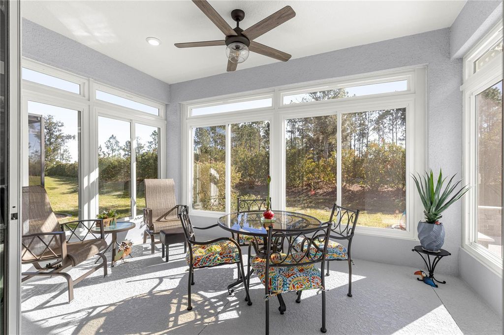 Welcome to this fantastic garden home located in the highly desirable Nottingham neighborhood of Stone Creek. (Professional photos coming soon!) This exceptional property offers an impressive array of features typically found only in larger luxury homes. Inside, the house is thoughtfully designed for comfort and efficiency, featuring a central vacuum system throughout the home and garage, DC motor ceiling fans, a Sensi smart thermostat for modern climate control, and indirect LED lighting above the kitchen cabinets that adds a warm, upscale ambience. The glass-enclosed sunroom is a standout feature, offering insulated walls below the double paned argon glass windows and additional insulation above the ceiling, creating an energy-efficient, comfortable space to enjoy year-round. The primary bedroom includes room-darkening curtains, perfect for rest and relaxation. Outdoor living is equally impressive with a beautiful pergola, established landscaping, a patio with a lighted sitting block wall, (constructed of premium travertine stone), and a screened-in front porch with motion sensor lighting. A pull-down ladder in the garage offers access to a partially floored attic space, and the epoxy floored garage also offers work-space options such as a sink, work bench, cabinets, and extra storage shelving. The driveway, sidewalk, and porch have all been coated, and tasteful hardscaping around the home helps make for maintenance-free living. This meticulously maintained home has been used infrequently by its snowbird owners, and offers a rare opportunity to enjoy refined garden home living with exceptional upgrades throughout. Stone Creek is a vibrant community offering three clubhouses, one with an onsite restaurant, a resort style pool, a fitness center, and dog parks. Residents enjoy an active social calendar with a plethora of clubs and events. This community is ideally located near top tier medical facilities, dining, and shopping, and proximity to three international airports. Make an appointment today to view this fabulous home!
