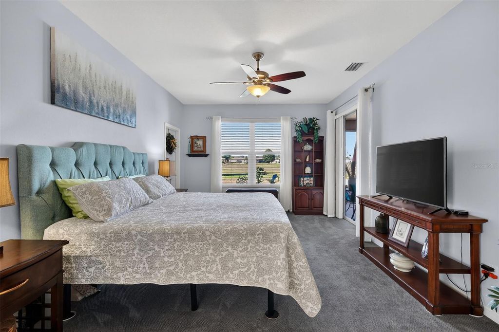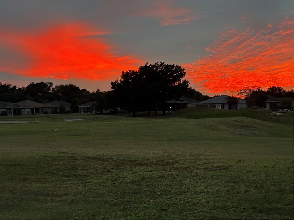Enjoy breathtaking golf course and sunset views from this beautifully designed Bal Harbour model home featuring 3 bedrooms and 2 bathrooms and an OFFICE. From the moment you enter, the welcoming foyer you will feel the warm open feeling of the home. You will notice the attention to tasteful details to include arched doorways, picture molding and crown molding. The kitchen offers ample counter space, a breakfast bar, a cozy morning room (breakfast nook), and a generously sized pantry. Appliances are approximately 5 years old. Sliders from the kitchen take you to Lanai ( 14.0 X 15.6) to enjoy the scenery. The lanai is also accessible through sliders from the living room and master bedroom. The spacious primary suite is a true retreat, featuring a huge walk-in closet and a luxurious ensuite bath with a separate soaking tub and shower. The master closet is huge for all of your clothing. Additional highlights include: NEW ROOF 2023, solar tube installed in master bathroom, windows replaced in 2021 ( transferable warranty) with the exception of dining room, office and bathroom windows and luxury vinyl plank flooring in living areas. The OVERISIZED GARAGE is 526 square feet and has a remote controlled screen for ease of getting in and out of garage, The HOA provides added value by including mowing and edging of grass as well as high-speed internet, amenities, guard at gate, trash pick up AND a $30 voucher for the on site restaurant. This home combines comfort, quality updates, and unbeatable views"”an exceptional opportunity you won't want to miss. There is also easy access to The Villages and Ocala. NO REAR NEIGHBORS JUST BEAUTIFUL GOLF COURSE!