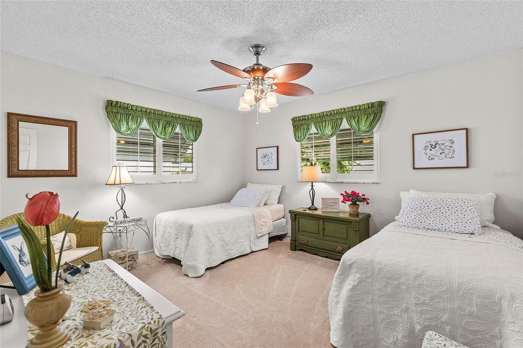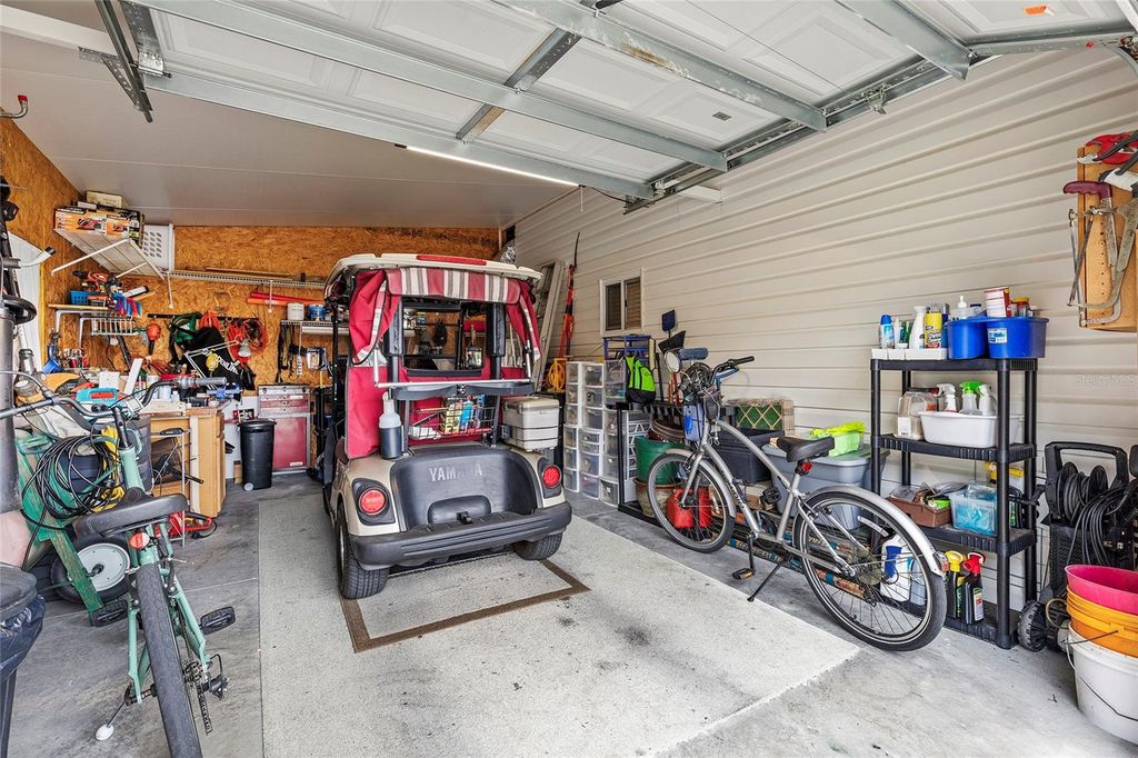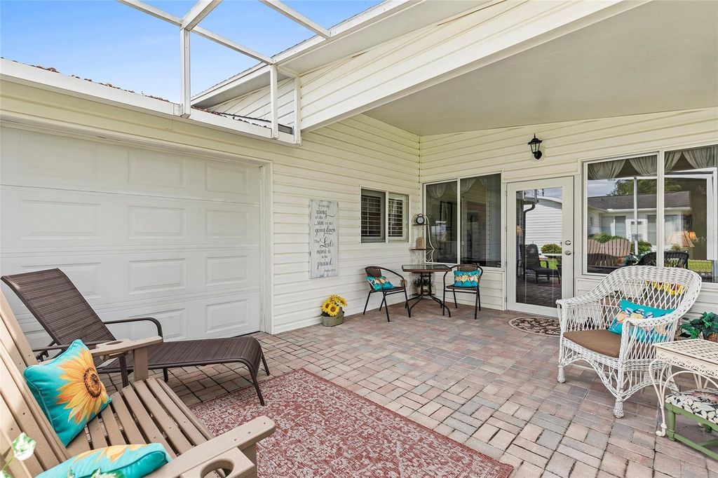 Located within the Premier 55+ Gated Golf Course Community of SPRUCE CREEK SOUTH, this exceptional home offers the perfect blend of relaxed Florida living and everyday convenience. Minutes from THE VILLAGES, FLORIDA off Hwy 441 / US 27, the property is ideally positioned near fine dining, upscale shopping, top rated hospitals, and provides easy access to I-75 for travel and day trips. The home is being sold FULLY FURNISHED and includes a 2018 YAMAHA GOLF CART, allowing you to settle in and start enjoying the lifestyle immediately. This inviting 3 Bedroom, 2 Bath Holly Floor plan sits on a desirable corner lot and welcomes you with soaring ceilings in the living and dining areas that create a bright, OPEN atmosphere. LAMINATE Flooring runs through the main living spaces and the primary bedroom, while Carpeting adds comfort to the guest bedrooms and the Florida Room. UPDATED Cabinetry in both the Kitchen and Bathrooms enhances the home's style and functionality, making everyday living both comfortable and efficient. One of the standout Features is the SPACIOUS 22 x 14 FLORIDA ROOM under air, complete with a vaulted ceiling, offering an ideal space for entertaining guests or unwinding with a peaceful morning coffee. Just beyond, a SCREENED PATIO provides a quiet outdoor escape, and the adjacent 9 x 25 STORAGE ROOM opens the door to endless possibilities, whether used as a hobby space, studio, workshop, or private retreat. The exterior is just as impressive, with attractive landscaping that adds curb appeal and a practical layout that includes a TWO CAR Garage plus a separate GOLF CART GARAGE with convenient side entry and utility door. Major systems have been thoughtfully maintained, with the HVAC replaced in 2020 and the water heater in 2012, offering added peace of mind. Surrounded by resort-style amenities and a welcoming neighborhood atmosphere, this home delivers a lifestyle that feels like a year round vacation. Don't miss your opportunity to enjoy comfort, convenience, and community in one of central Florida's most desirable active adult communities...Spruce Creek South.