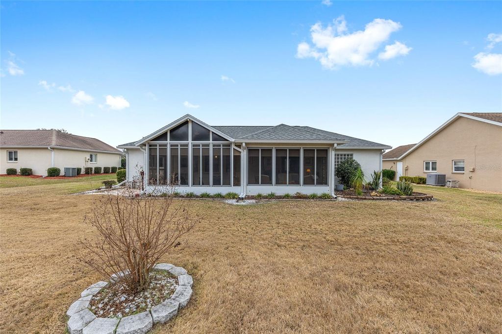 Welcome to relaxed, resort-style living in Ocala Palms, one of Ocala's most active 55+ communities, conveniently located near shopping, dining, and I-75. This cozy yet open 2-bedroom, 2-bath home is perfectly positioned on a golf-course view lot, backing up to the tee box at Hole #2"”offering peaceful views and no rear neighbors. Step inside to a warm, inviting space that feels instantly like home. The vaulted/cathedral ceilings in the main living area create an airy, open feel, while both bedrooms feature tray ceilings, adding character and a touch of elegance. Recent updates include fresh interior paint, brand-new carpet, updated lighting fixtures, and luxury vinyl plank flooring in the kitchen, bathrooms, and laundry room, making this home truly move-in ready. Living in Ocala Palms means enjoying an amenity-rich lifestyle included in the monthly fee, such as a 24-hour gated entrance, weekly curbside trash service, and access to the impressive 19,000+ sq ft clubhouse. Residents enjoy indoor and outdoor pools, a fitness center, tennis and pickleball courts, bocce ball, shuffleboard, billiards, library, arts & crafts room, and a full calendar of clubs, events, and social activities organized by and for residents. An on-site restaurant and an 18-hole golf course are also available, with golf offered separately. If you're looking for a cozy, low-maintenance home with golf-course views, thoughtful upgrades, and a welcoming community atmosphere, this one truly checks all the boxes. Please check out the video of the virtual walkthrough that is available.