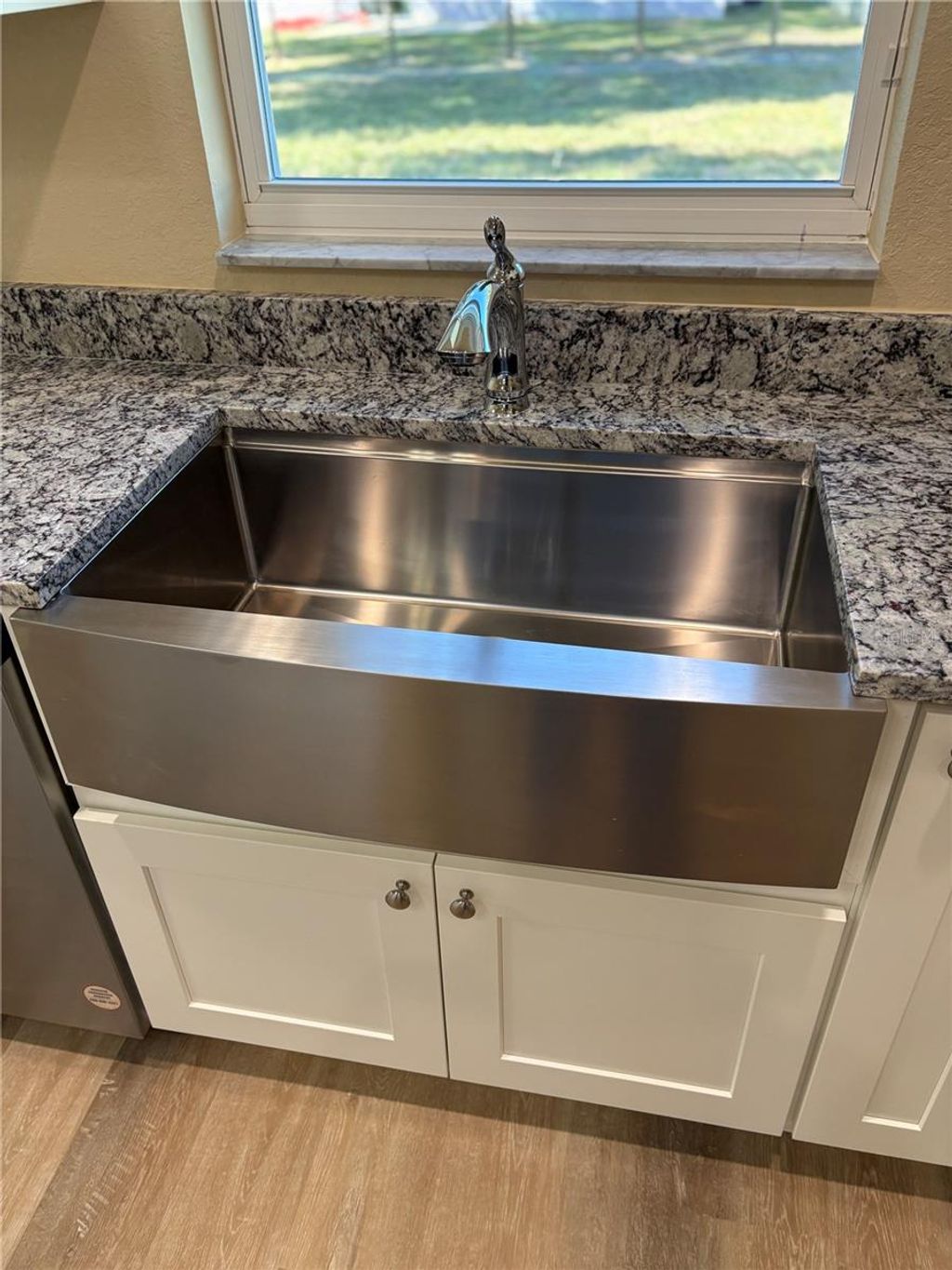 This 2025 St. Michael model home is a block construction property located within walking distance to the VA Veterans Clinic near The Villages. The home sits on a .31-acre lot and offers no HOA, no 55+ restrictions, no CDD, no flood zone, and no other restrictions. With over 2,090 total square feet, the spacious open-concept living area is perfect for entertaining. The kitchen is elegantly designed with granite countertops, 42-inch wood cabinets with soft-close system and crown molding, a large multifunctional island with storage, electrical outlets, and bar seating, a stainless steel double-bowl apron sink, and Whirlpool appliances including a microwave over the range. The interior also features a generous laundry room with cabinetry. The master suite includes a walk-in closet and a master bathroom with tiled walk-in shower, glass enclosure, granite countertops, dual faucets, and a wall-mounted cabinet with mirror. Two additional guest bedrooms have abundant natural light and share a luxury bathroom with steel tub, tiled shower, granite countertop, wood cabinet, and linen closet. The 2-car garage provides access to the private patio and features an opener, epoxy-treated floor, and side door. The patio offers space for outdoor activities and potential pool installation. Additional upgrades include marble window sills, upgraded lighting fixtures and ceiling fans, extra electrical outlets, a pre-wired alarm system, and an A/C unit located in the laundry room. The lot is fully landscaped with sod, decorative stone accents, modern exterior colors, and city water. This home comes with a builder warranty and is conveniently located just minutes from The Villages, with easy access to restaurants, championship golf courses, and town squares. ¡Hablamos español!