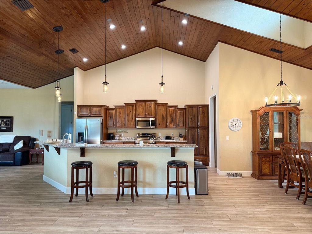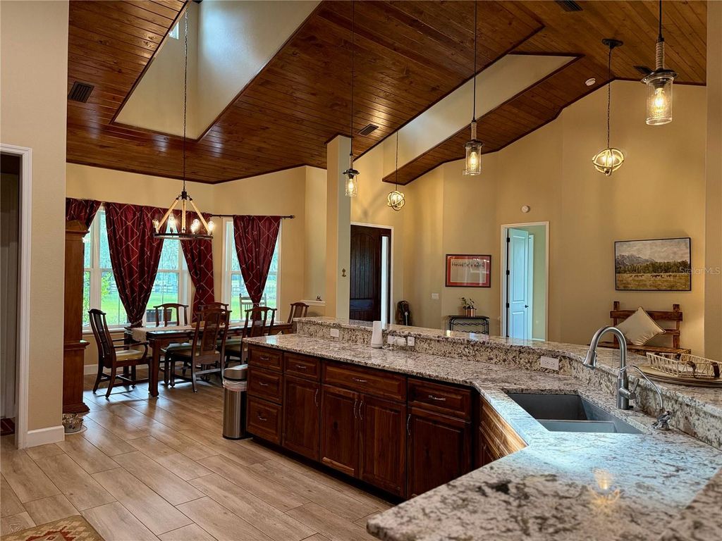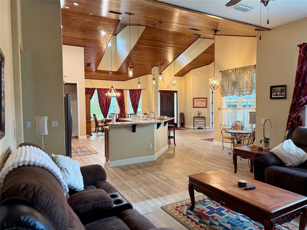 Beautifully maintained 3-bedroom, 2-bath pool home situated on 3 fully fenced acres in the heart of Ocala's Horse Country. Ideally located just 9 minutes from the World Equestrian Center and only 3 minutes from HITS, this property offers the perfect blend of privacy, convenience, and equestrian-friendly living. Surrounded by majestic oak trees and open pasture, the home features a comfortable and functional layout with modern amenities, a spacious kitchen, and inviting living areas ideal for everyday living or hosting guests. Master Bathroom is a beautiful spa with double sinks, Soaking Tub and Walk in shower. The stunning tongue and groove ceiling in the main living area adds warmth to the home. The chefs kitchen comes complete with stone counter tops and stainless steel appliances. Step outside to enjoy your own private pool, perfect for relaxing after a day at the shows, and a peaceful outdoor setting ideal for entertaining or unwinding. The property includes a barn and paddock, making it ideal for equestrian use or hobby farming. Ample parking is available for vehicles, trailers, and equipment, adding to the functionality of this exceptional property. Whether you are looking for a full-time residence, seasonal escape, or investment opportunity in Ocala's highly desirable equestrian corridor, this charming property delivers comfort, functionality, and an unbeatable location.