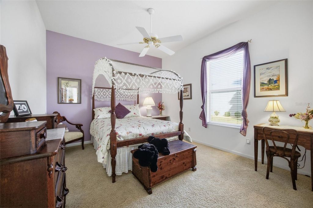 Located in the desirable Ocala Palms 55+ golf course community, this beautifully maintained 3-bedroom plus den home with a 3-car garage offers spacious living and exceptional golf course views. The open floor plan creates an effortless flow throughout the main living areas, enhanced by fresh interior paint and crown molding for a polished finish. The kitchen is designed with the home chef in mind, featuring Corian countertops, abundant prep space, and generous counter areas with an island and a large pantry, ideal for both entertaining and everyday living. The primary suite serves as a private retreat with a dedicated sitting area and two walk-in closets. The en-suite bath includes dual sinks, a relaxing garden tub, a walk-in shower, and a linen closet for added storage. Guest accommodations are thoughtfully arranged, with a guest bath offering a tub/shower combination and its own linen closet. The den provides flexible space for a home office, hobby room, or additional sitting area. The expansive 29x13 enclosed lanai truly extends the living space, featuring glass windows, blinds, tile flooring, and ceiling fans, all while overlooking the golf course. Whether enjoying quiet mornings or hosting friends, this light-filled space offers year-round comfort and beautiful views. Patio furniture will remain with a full-price offer, making it easy to settle in and immediately enjoy the Florida lifestyle. Additional highlights include an inside laundry room with washer and dryer included, along with a full 3-car garage offering ample storage and room for golf carts or recreational equipment. Conveniently located for easy access to shopping, restaurants and the interstate. Schedule your tour today!