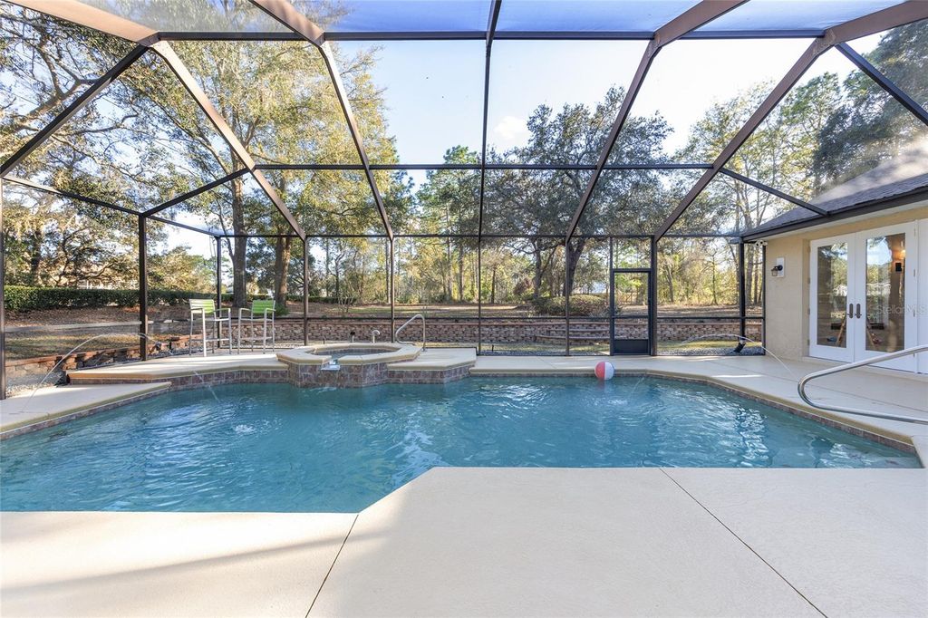 Welcome to this expansive residence at 898 E. Liberty Street in Hernando, ideally positioned within the master-planned community of Citrus Hills. Set on more than one acre, this 4-bedroom, 3-bath home offers 3,591 square feet of thoughtfully designed living space, combining architectural detail, smart-home integration and seamless indoor-outdoor functionality. Citrus Hills is known for its rolling topography, well-maintained surroundings and access to golf, fitness, dining and social amenities through optional membership programs. The community's location provides convenient access to the Suncoast Parkway 589, offering a direct route to Tampa International Airport and the greater Tampa Bay region. Daily conveniences, medical facilities, restaurants and shopping centers are all within close proximity, supporting both full-time and seasonal living. Inside, architectural upgrades include 5.25-inch baseboards, crown molding throughout including the primary suite and bath, grid-style windows and modern LED lighting anchored by a stunning hand-blown glass chandelier. A dual-sided gas fireplace defines the family room and expansive flex room, which features a vaulted ceiling, French doors to the pool, bar-height sink, beverage cooler and built-in shelving. Engineered wood flooring extends from the foyer through the main living areas. The kitchen is appointed with upgraded cabinetry, a large island, tiled backsplash, range, stainless steel wall oven with integrated microwave, wine storage cabinet, built-in desk with task lighting and a walk-in pantry with custom wood shelving. A built-in seven-stage reverse osmosis water filtration system enhances functionality. The laundry room includes a utility sink and tiled backsplash. The primary suite features a vaulted ceiling, dedicated seating area and two custom walk-in closets. The bath is finished with 24-by-24-inch tile and a floor-to-ceiling tiled walk-in shower. Blackout shades in the primary bedroom and ultraviolet-filtering shades in the Florida room support comfort and efficiency. Smart-home technology integrates security cameras, thermostats and an eight-zone irrigation system. The upgraded security system includes motion and glass-break sensors. Whole-house surge protection, panel protection and dedicated surge protectors for pool equipment provide additional infrastructure enhancements. A new main heating and air conditioning system with digital controls has been installed. Outdoors, the more-than-one-acre homesite offers mature shade oaks, concrete landscape borders and a full-length upgraded retaining wall. The custom saltwater pool and jetted spa include tile-lined waterlines, along with a new pool pump, salt system and filter. The screened lanai features extra-tall French doors, overhead fan and integrated lighting to support year-round use. Additional highlights include a custom leaded-glass front door, full-house gutters with buried downspouts, pre-wired television and cable connections in the living and flex rooms and an extra-long three-car garage with tandem and single doors plus two full-sized windows for natural light. This property presents a rare opportunity to enjoy space, technology and community connectivity in one of Hernando's established acreage settings.