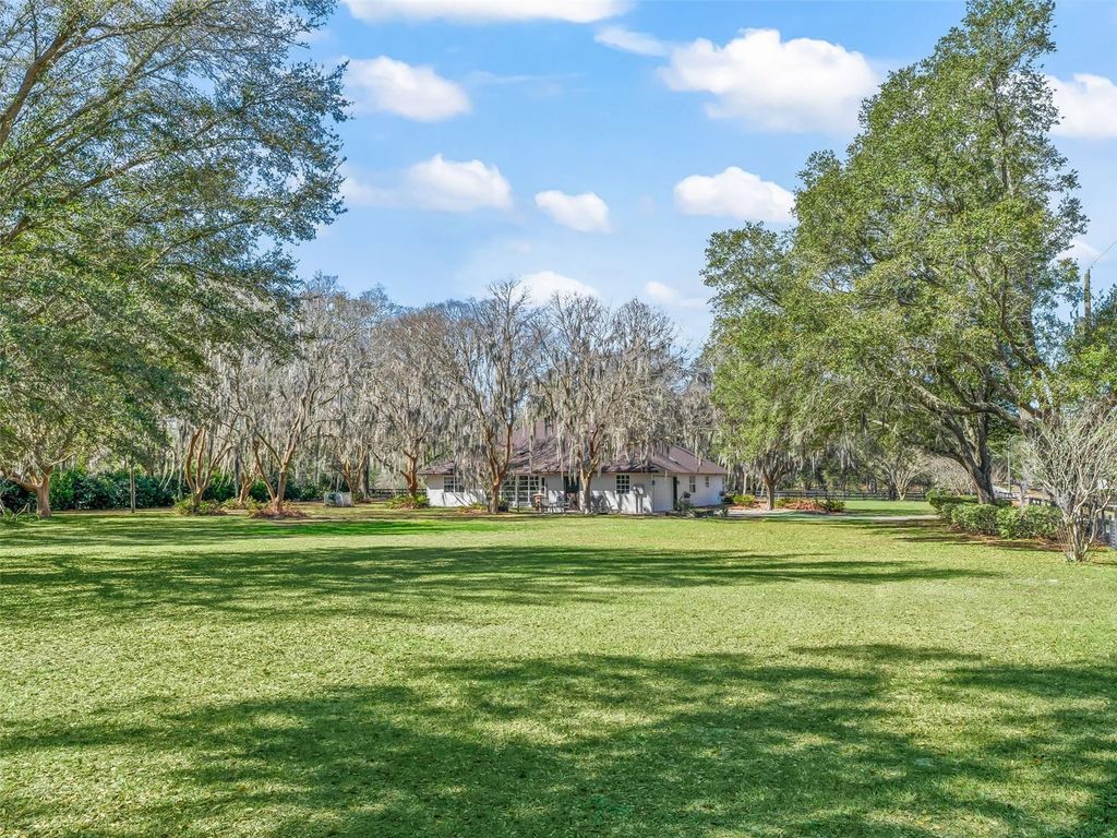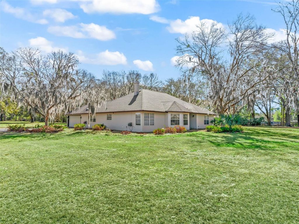 Excellent condition & location describes this house on an 3 acre corner lot within hacking & golf cart distance to the World Equestrian Center Ocala, yet located in a quiet horse friendly neighborhood with no HOA. The property has gorgeous oak trees, is level, & well designed to be able to accommodate a barn, arena & paddocks. The existing 3 bedroom plus office home is concrete block construction, has an attached 2 car garage, & is move-in ready with recently replaced roof, soffits, fascia, electric service, HVAC, hot water heater, & the exterior has been re-painted. The house interior has a generously sized kitchen with granite countertops, pantry & tile flooring. The over-sized primary bedroom opens to the Florida room & has an en-suite 5-piece bathroom with dual walk-in closet. Surrounded by gorgeous horse farms, but close to shopping, restaurants & amenities- this property is a must see!
