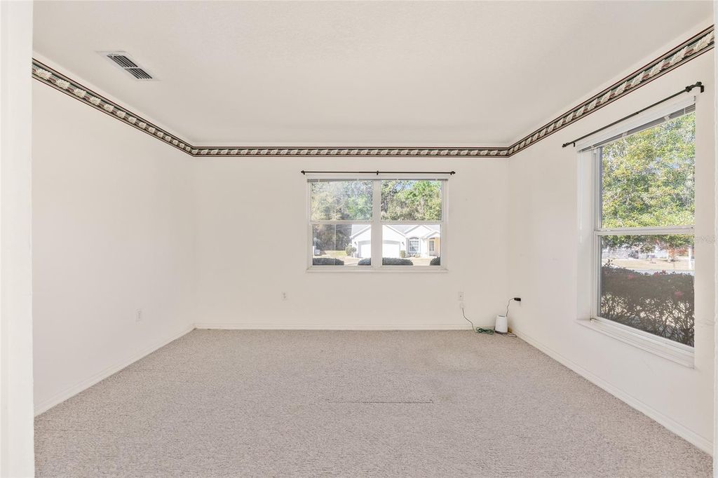 Beautifully maintained 2-bedroom, 2-bath split-bedroom home with a den and a lanai under heat and air, offering just under 1,800 sq ft of comfortable living space in the desirable Golfview neighborhood of Oak Run. Upon entering, you're welcomed by a spacious living room and dining room combination featuring tall vaulted ceilings and a large skylight that fills the space with natural light, creating an open and airy feel. The kitchen overlooks the main living area and features nice cabinetry, Corian countertops, a 2024 refrigerator, and a 2024 dishwasher"”perfect for both everyday living and entertaining. The primary suite includes a walk-in closet, a large vanity, separate soaking tub, walk-in shower, and an additional linen closet for extra storage. The split-bedroom layout offers privacy for guests, with well-maintained carpet in the bedrooms and laminate flooring throughout most of the main living areas. A spacious 2-car garage provides additional storage and convenience. The inside laundry room, located just off the kitchen, includes a 2023 washer and dryer along with a convenient pocket door. Major updates include a 2021 A/C system and a 2016 roof, providing peace of mind for years to come. The home is also equipped with a Rain Bird irrigation system and a Taexx in-wall pest defense system for added convenience and protection. Service fees includes trash pickup, basic cable, 24-hour security, access to all community amenities, and maintenance of common areas and facilities, Residents of this community enjoy access to numerous amenities with six pools ( 1 indoor ), 5 Hot tubs - spanning across three different club houses! But it doesn't stop there.. Over a 150 clubs to join, two recently updated workout centers, Enjoy meals at the on-site restaurant or hit the greens at the community golf course. Plus, there's a dedicated dog park for your furry friends. This community ensures an active and fulfilling lifestyle. Don't miss out on this opportunity to make this home yours!