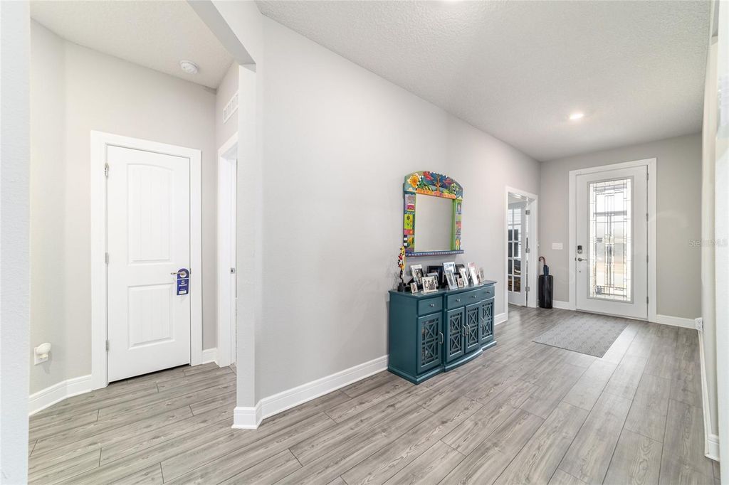 Don't miss out on these rare, private Preservation Farm views, offering an elegant sweep of broad pasture and natural beauty, creating a polished and serene backdrop for luxury living. Tucked inside the gated 55+ Stone Creek Golf Course Community, celebrated for its resort-style amenities, this beautifully upgraded Spruce model blends modern sophistication with smart, functional design for an elevated and effortless lifestyle. With 3 bedrooms, 2 baths, a bonus room with a bay window, and a screened-in lanai with motorized sunshades, the home is crafted for privacy, versatility, and everyday comfort. Exceptional curb appeal greets you with stacked stone accents, striking privacy shutters, a custom-painted expanded driveway with paver detailing, mature landscaping with a graceful palm tree, and decorative concrete curbing with river rock ground cover wrapping the perimeter of the home. A screened front porch leads into the contemporary open-concept layout where lofty ceilings, recessed LED lighting, and staggered luxury vinyl plank flooring unify the gathering room, café, and kitchen. The spacious gathering room features a tray ceiling, upgraded fan, and a designer wood-plank accent wall. Expansive glass sliders open to the screened lanai and paver patio, showcasing sweeping farm views from every angle, creating an ideal backdrop for relaxing or outdoor entertaining. At the heart of the home, you will find the chef's kitchen designed to impress. The kitchen centers around an oversized island with decorative wood accents, perfect for meal prep and casual dining. Additional highlights include crisp Shaker cabinetry with soft-close hardware, gleaming quartz countertops, a statement glass-tile backsplash, a walk-in pantry, and stainless steel appliances, including a recently upgraded refrigerator. Positioned at the rear of the home for maximum privacy, the Owner's Suite showcases a tray ceiling and a custom outfitted California closet. The spa-inspired en suite bath features a quartz-topped double-sink vanity, a Roman-style walk-in shower with seating ledge, a private water closet, and a transom window that bathes the space in natural light. Two generously sized secondary bedrooms and a bonus flex room provide ideal options for guests, a home office, or a hobby room. A convenient mudroom with built-in full cabinets and shelving leads to the extended two-car garage offering durable epoxy finished flooring, overhead storage, an insulated garage door with automatic privacy screen, and over garage insulation. Additional thoughtful upgrades include Plantation shutters throughout, surround sound speakers, a dedicated interior laundry room, a whole-home water softener, and a Smart Home package featuring a video doorbell. Beyond this thoughtfully designed home lies a vibrant, amenity-filled community where each day feels like a retreat. With a 24/7 staffed gated entrance ensuring both security and peace of mind, you'll enjoy comfort, connection, and convenience at every turn. Luxury-inspired amenities include heated pools, a state-of-the-art fitness center, a spa, and relaxing hot tubs and saunas. Stay active with pickleball, bocce, tennis, and softball field, while a dedicated lifestyle staff curates entertainment, activities, and special events to foster connections. Just beyond the gates, enjoy a golf course, pro shop, and restaurant, perfect for socializing and unwinding. Make your move today and experience resort-style living at its finest!