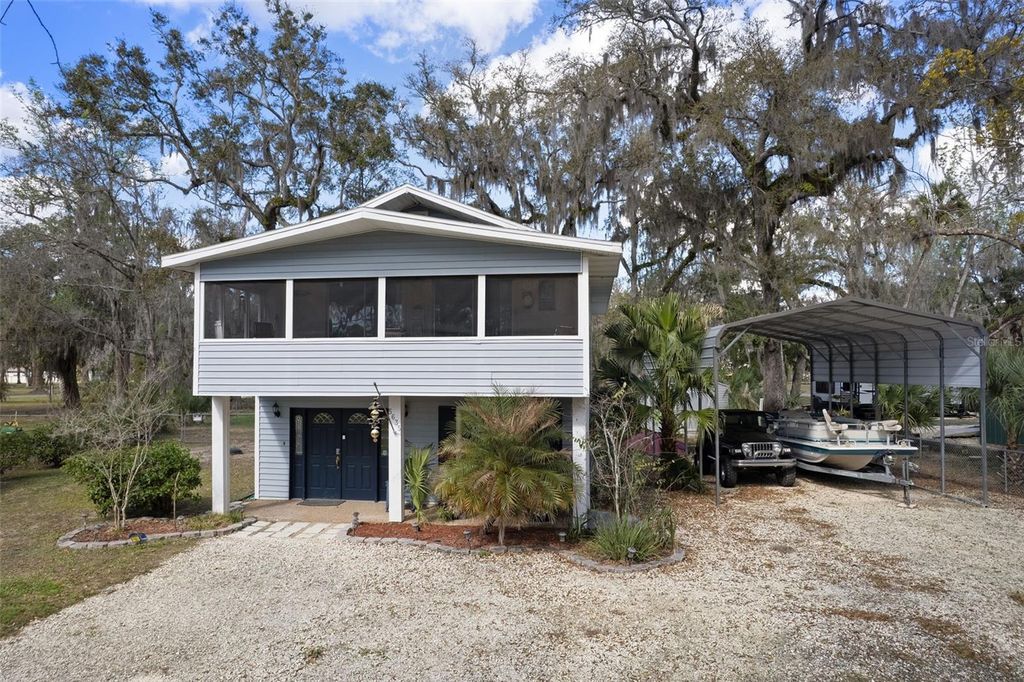 This 3-bedroom, 2 -bath, two-story home is perfectly positioned for those who love boating, fishing, scalloping, and soaking up the natural beauty of Florida's Nature Coast in Old Homosassa. Whether you're launching the boat at sunrise or cruising the neighborhood by golf cart in the evening, this home puts you right where you want to be. The main living area is upstairs, offering a inviting space with laminate wood-look flooring and access to a screened porch just off the living room-perfect spot to unwind after a day on the water. Downstairs features a spacious secondary living area, flex space, with beautiful wood-plank style tile flooring and a cozy fireplace, creating a warm gathering space for guests and family. A full bathroom and laundry area are also located on the lower level, providing flexibility for visitors or extended stays. Recent updates provide peace of mind, including a new HVAC System, roof replacement in 2020, updated electrical outlets (including dryer outlet) and replacement windows. Step outside to enjoy the back patio and shed great for storing fishing gear, kayaks, or all your river toys. Some of the furnishings convey, making this an easy move-in opportunity for a full-time residence, or weekend retreat. Property is being sold As-Is and ready for its next adventure.